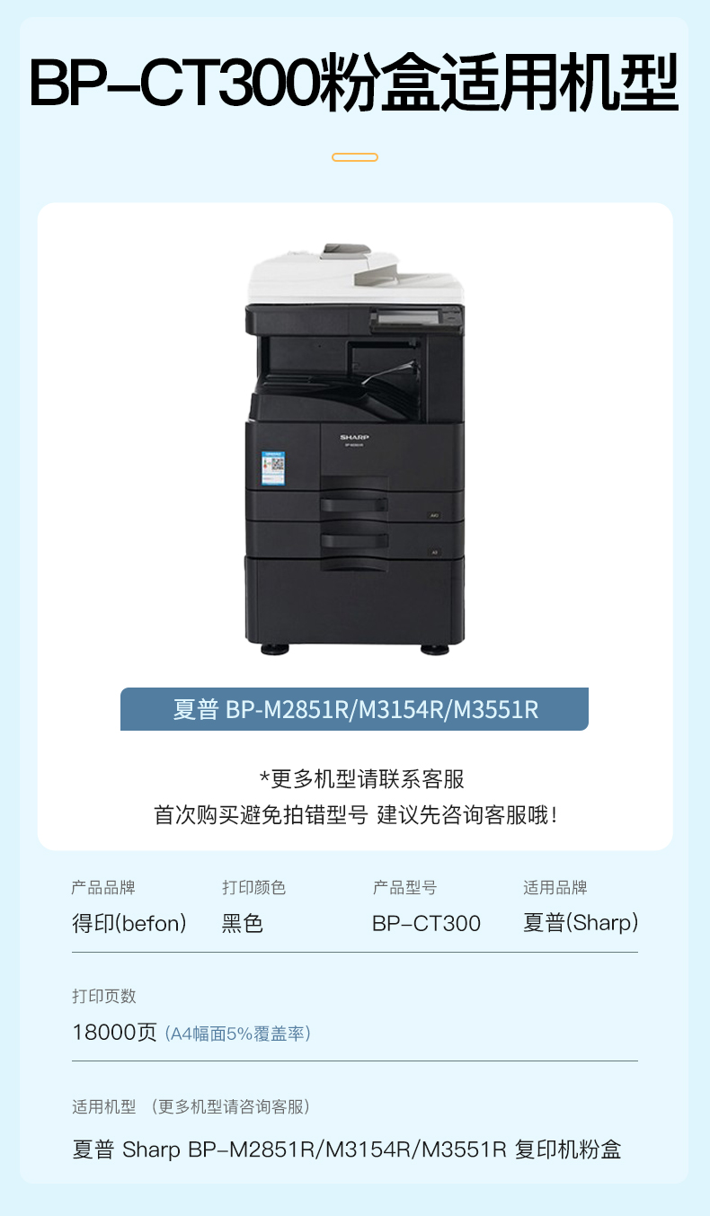 得印BP-CT300粉盒 约18000页 适用夏普SHARP BP-M2851R M3151R M3551R