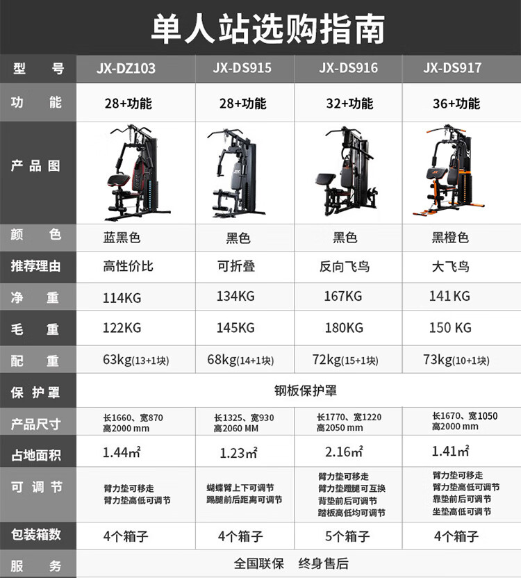 军霞(JUNXIA)综合训练器单人站家用款多功能健身器材健身房力量器械JX-DZ103
