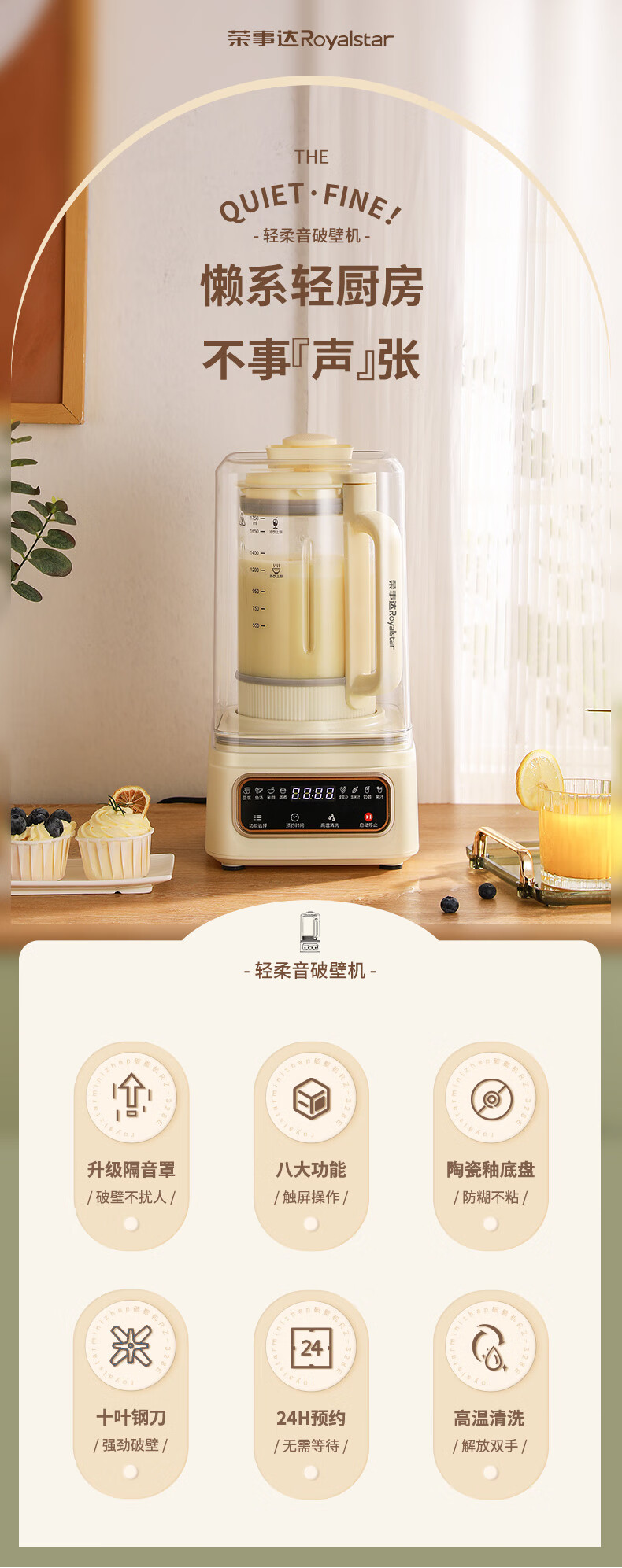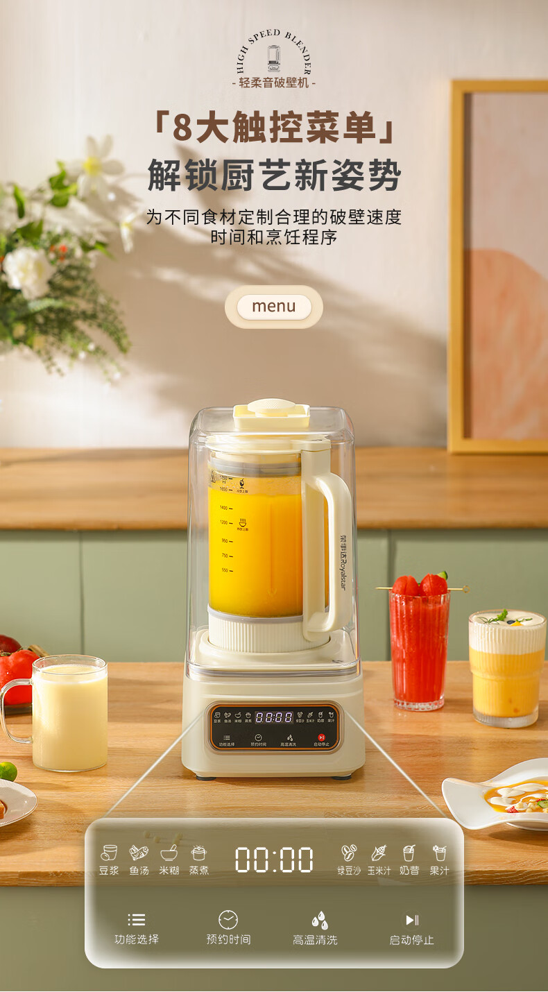 荣事达(Royalstar)破壁机家用豆浆机加热全自动辅食机1.75L大容量降噪搅拌机早餐机柔音 榨汁机 RZ-328E