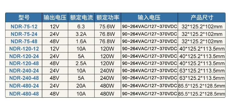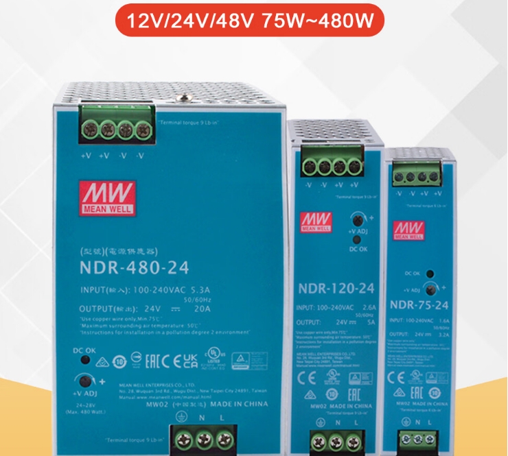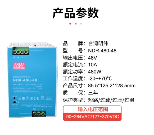 明纬(MEANWELL)开关电源48V 10A 导轨安装PFC 明纬NDR-480-48