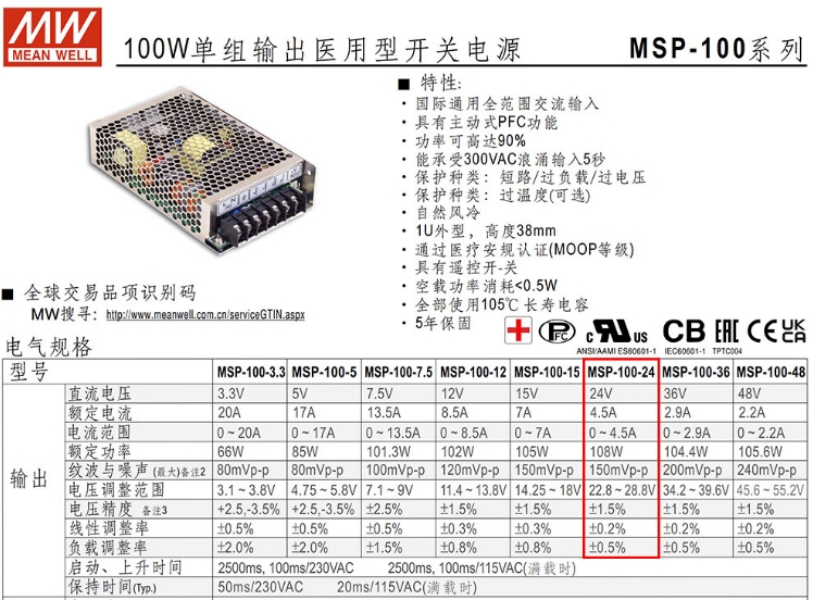 明纬(MEANWELL)MSP-100-48 高性能精密医疗机械设备驱动模块 明纬电源 2.2A 48v