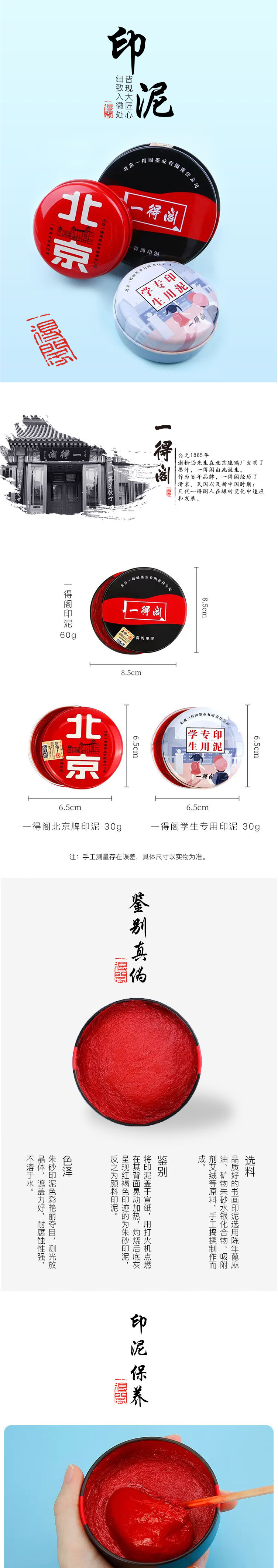 一得阁印泥手账书画彩色印泥书法篆刻印泥印章套装便携印台印泥盒北京印泥30g