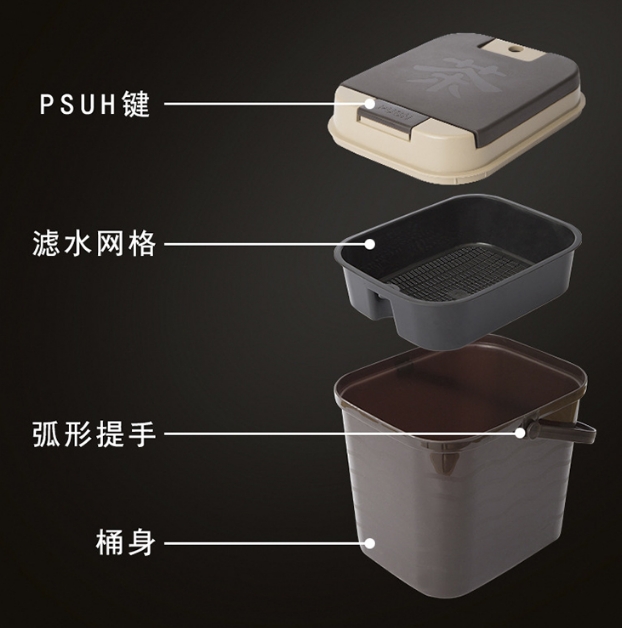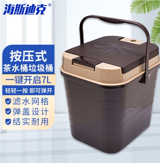 海斯迪克 按压茶水桶垃圾桶 商用办公室用塑料弹盖茶渣桶 一键开启7L HK-758
