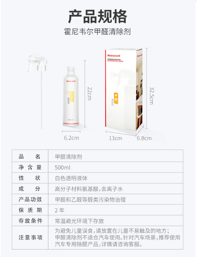 霍尼韦尔(Honeywell)甲醛清除剂 强力去除甲醛喷剂 新房急入住 24小时持续除醛