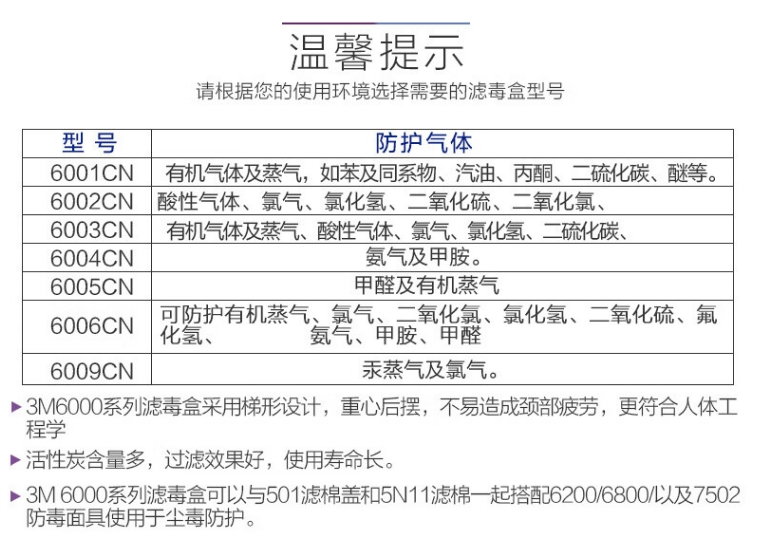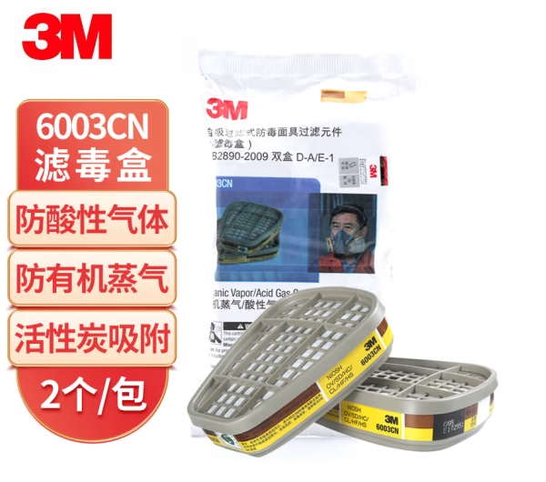 3M 6003CN滤毒盒过滤盒 防有机及酸性气体 搭配6200/7502/6800面具使用 2个(1包)