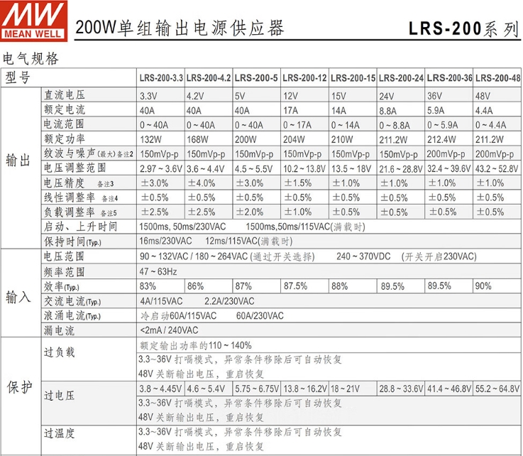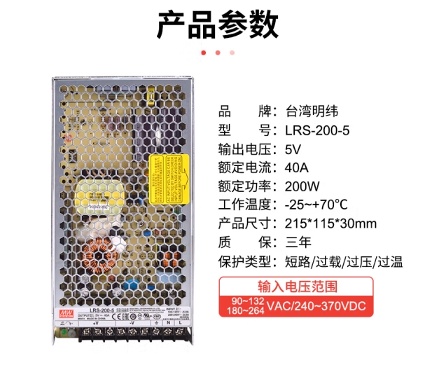 明纬(MEANWELL)开关电源5V 40A输出 替代NES直流DC稳压变压器监控 LRS-200-5