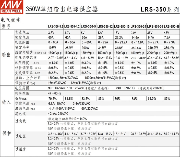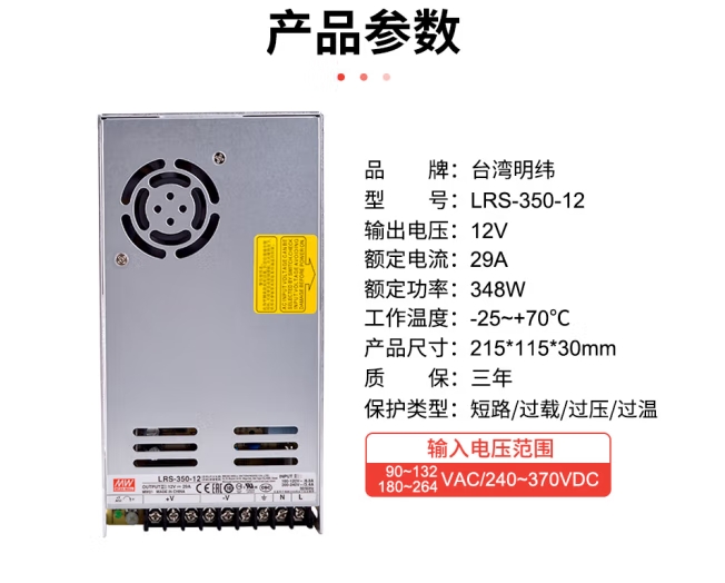 明纬(MEANWELL)开关电源12V 29A输出 替代NES直流DC稳压变压器监控开关电源 LRS-350-12