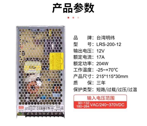 明纬(MEANWELL)开关电源12V 17A输出替代NES直流DC稳压变压器监控 LRS-200-12