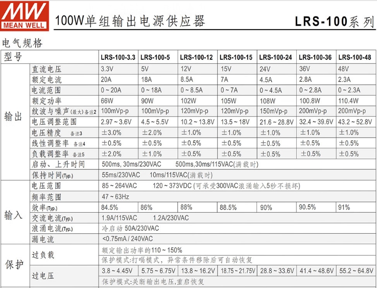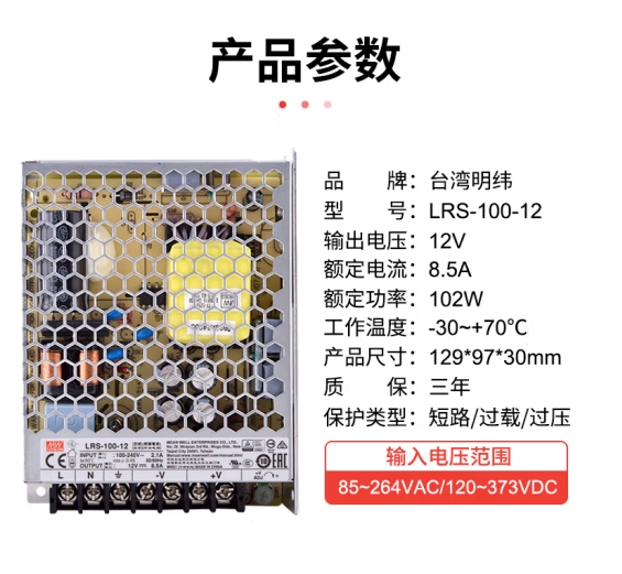 明纬(MEANWELL)开关电源12V 8.5A输出 替代NES直流DC稳压变压器监控 LRS-100-12