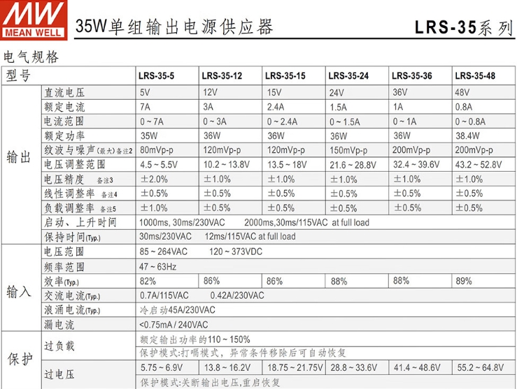 明纬(MEANWELL)开关电源5V 7A输出 替代NES直流DC稳压变压器监控 LRS-35-5