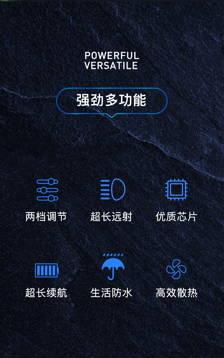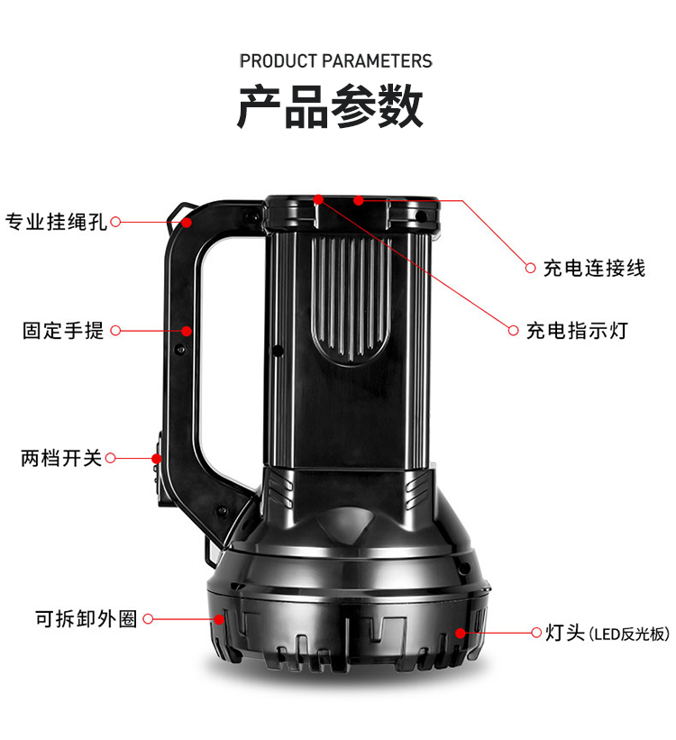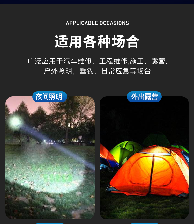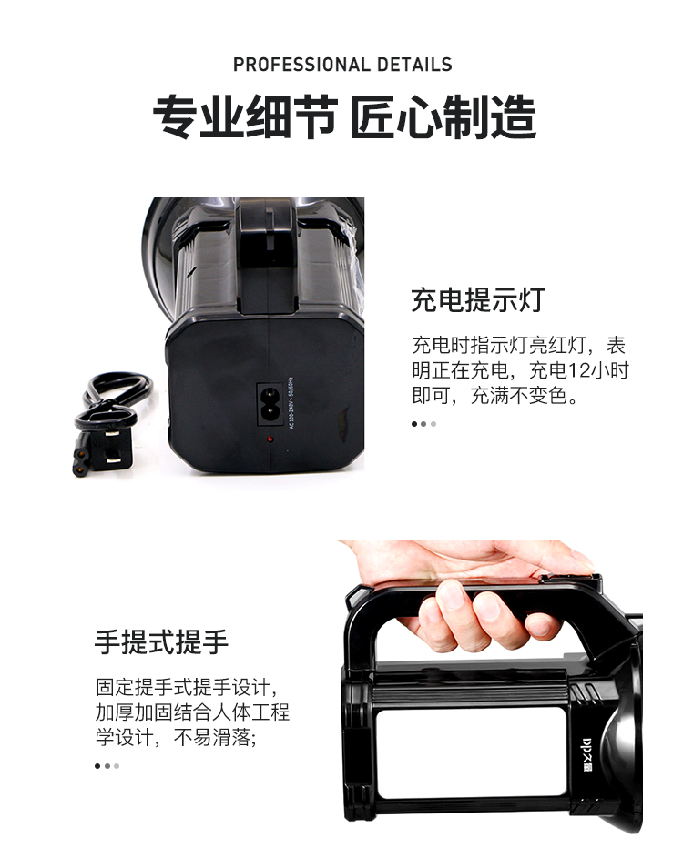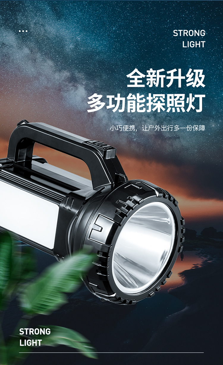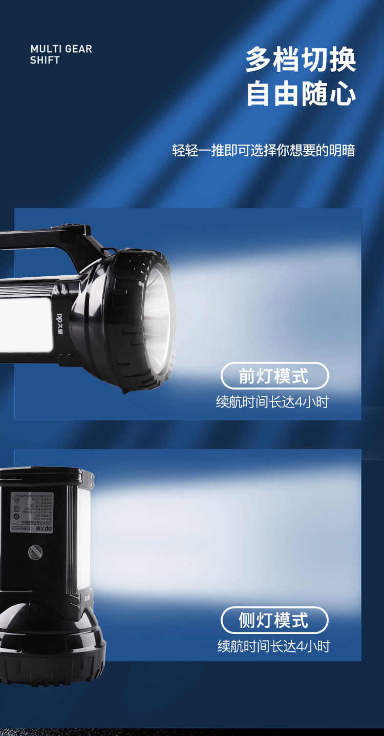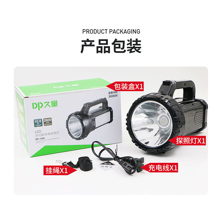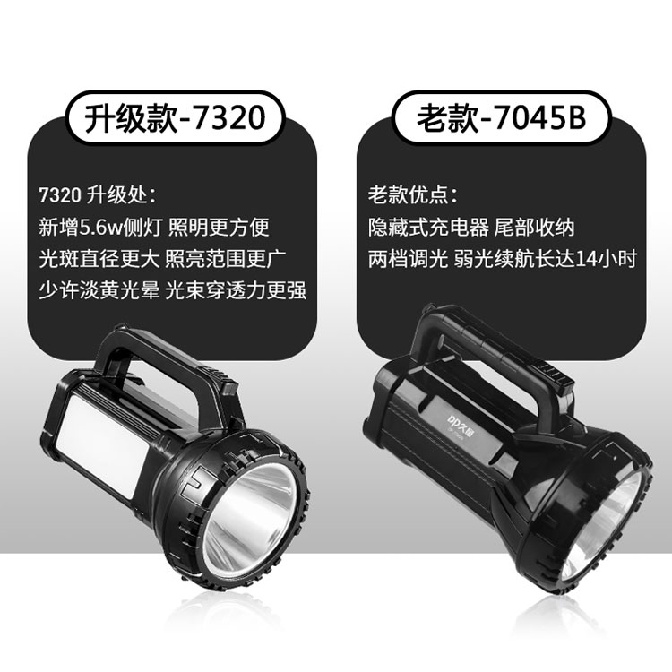 久量(DP)DP-7320 手电筒强光超亮远射LED家用户外灯可充电便携应急防身探照灯 升级款带侧灯