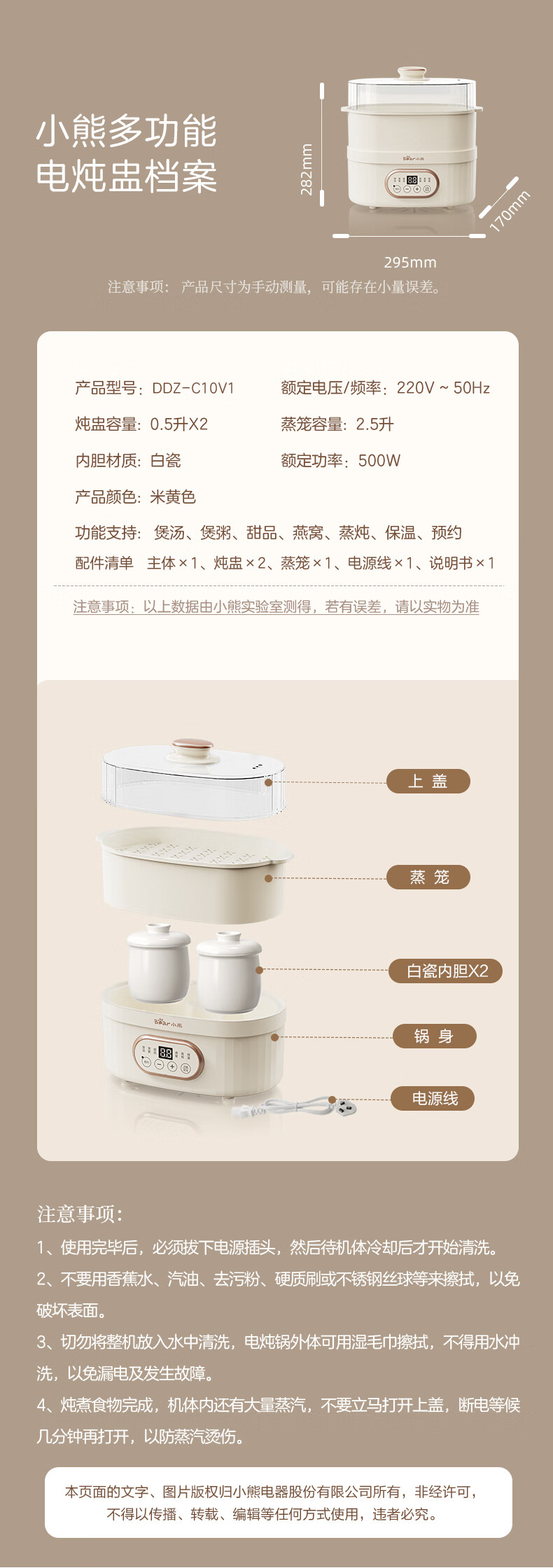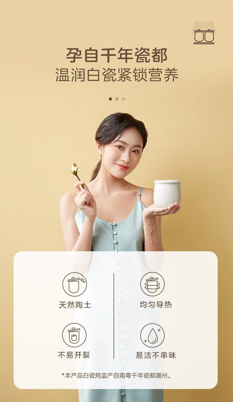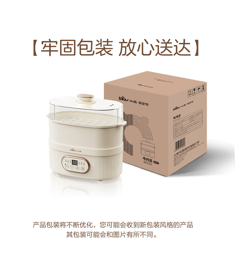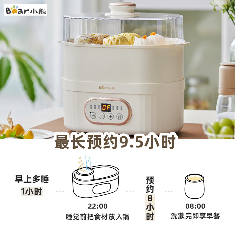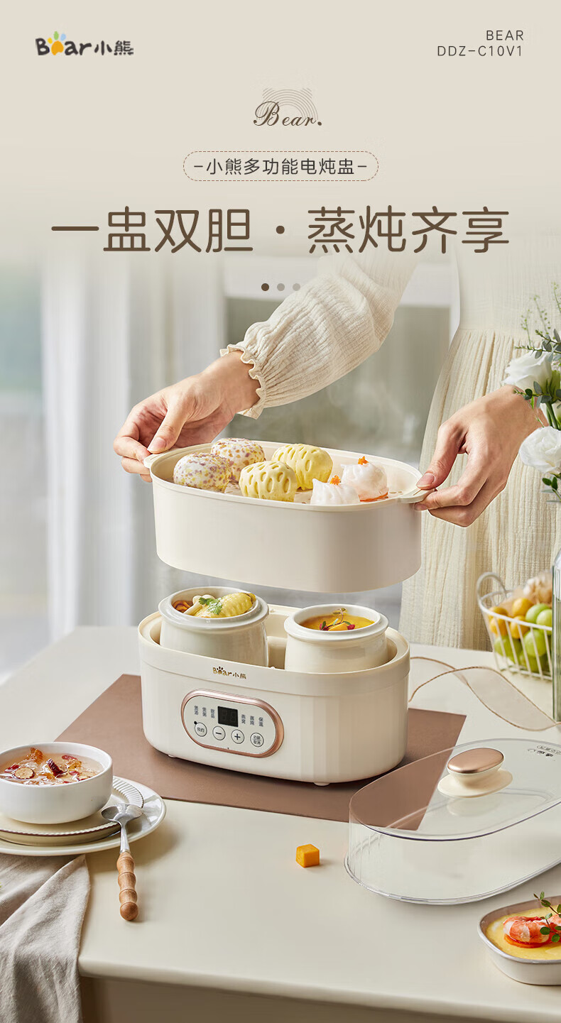 小熊电炖锅 电炖盅 煲汤锅炖汤锅 隔水炖 婴儿煮粥锅熬粥燕窝带蒸笼可预约定时DDZ-C10V1 1L