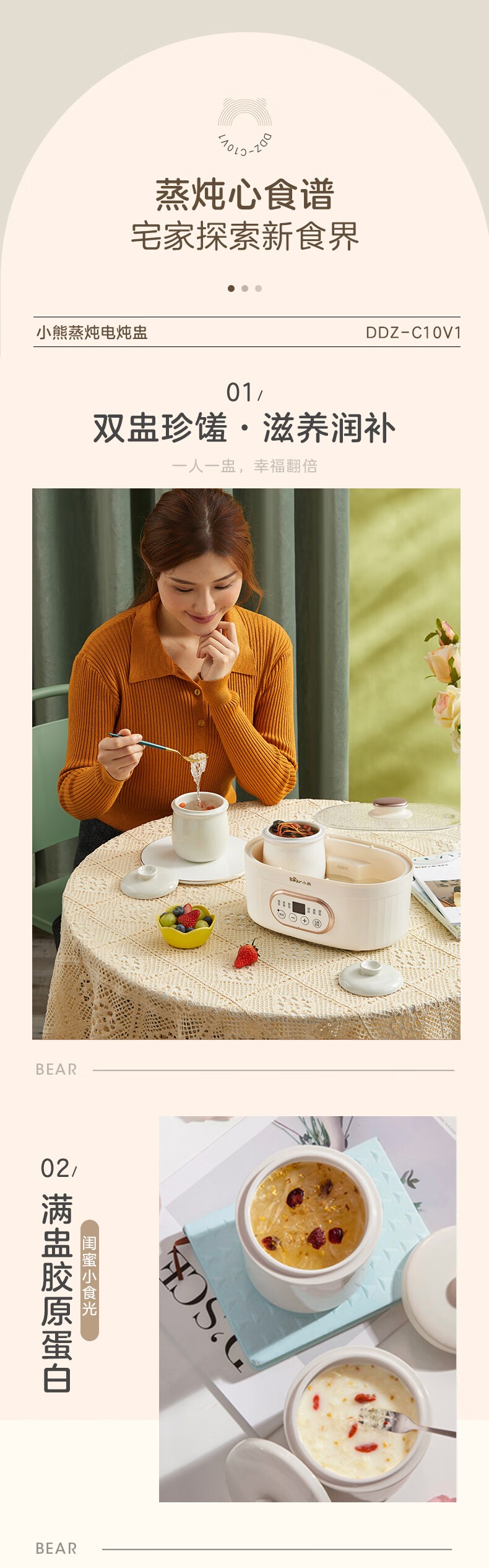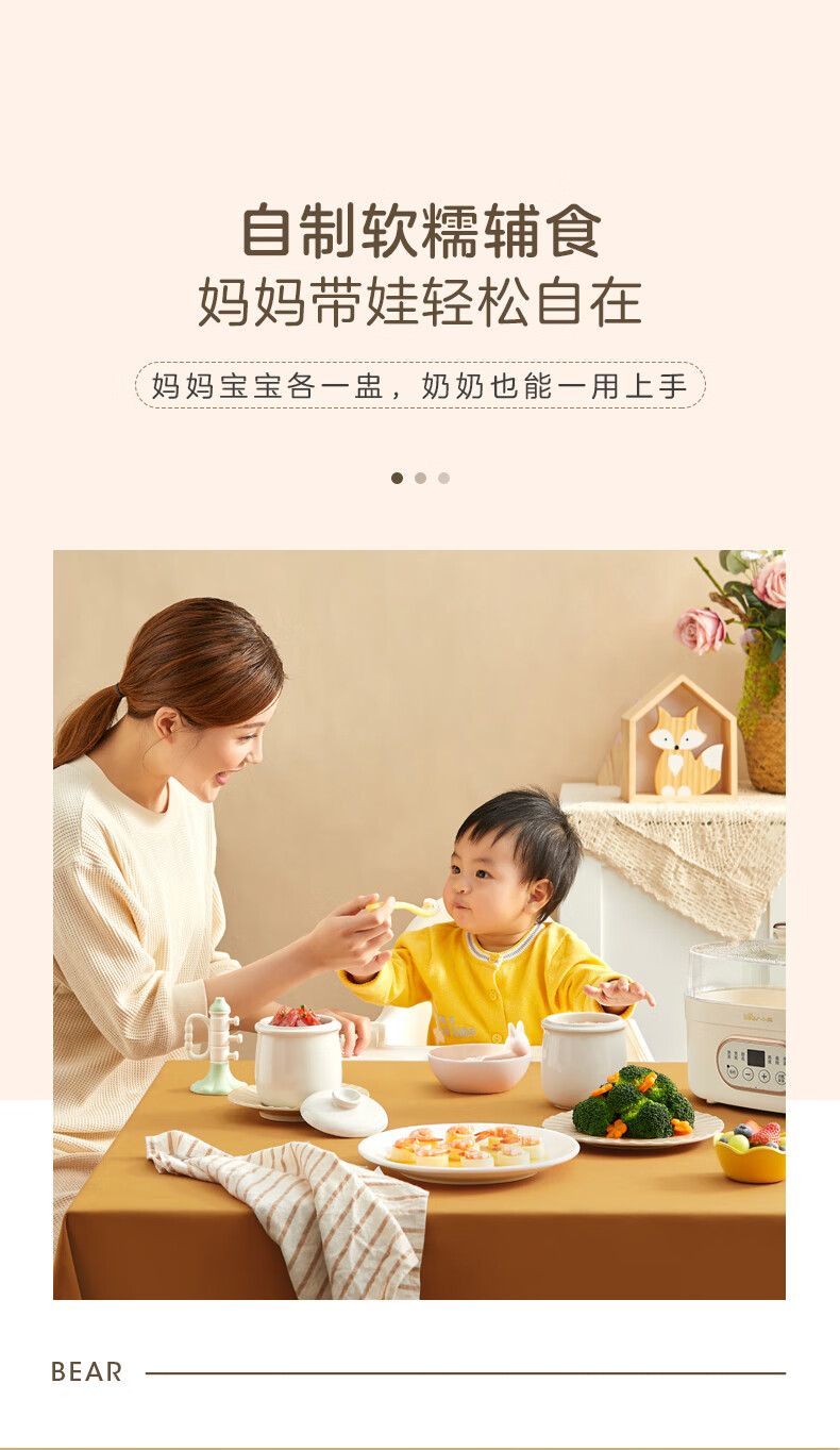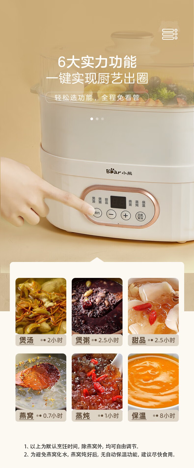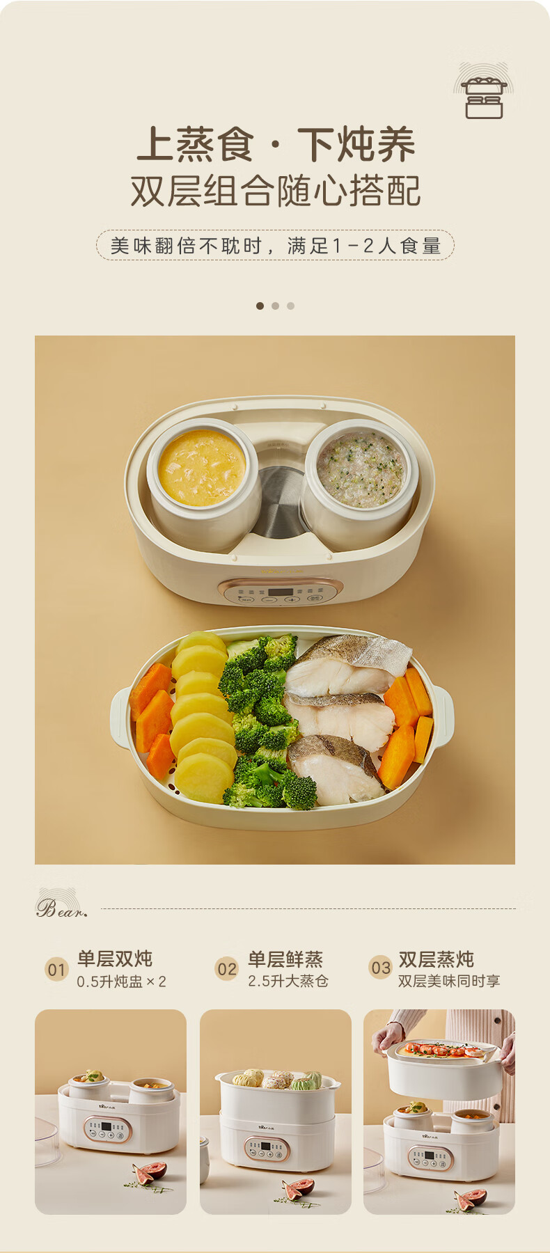 小熊电炖锅 电炖盅 煲汤锅炖汤锅 隔水炖 婴儿煮粥锅熬粥燕窝带蒸笼可预约定时DDZ-C10V1 1L