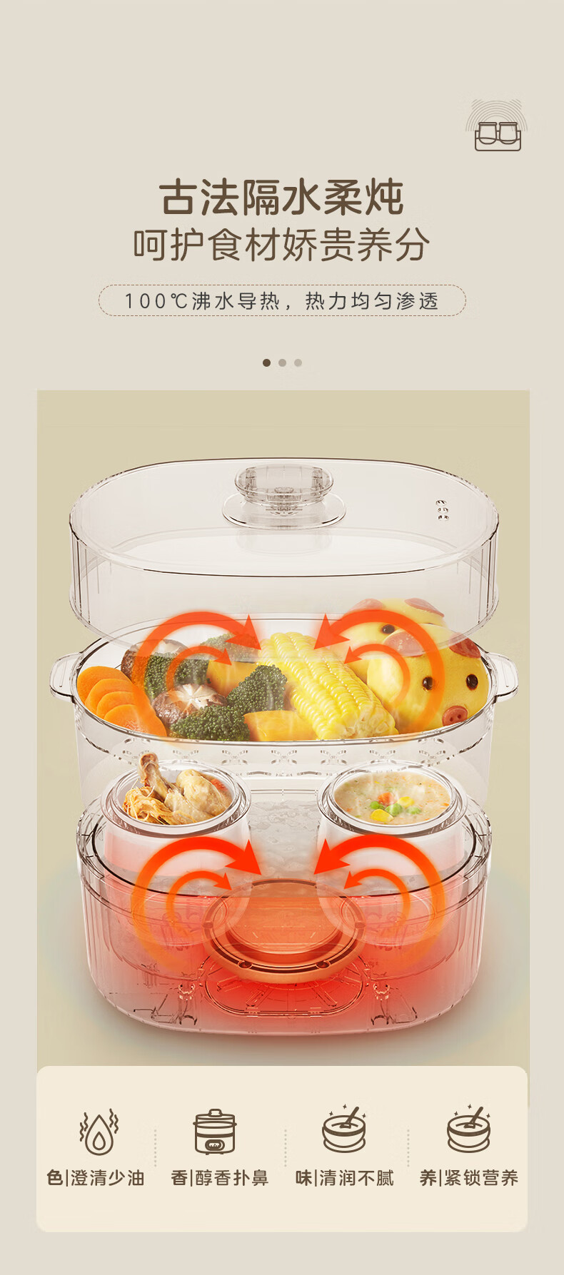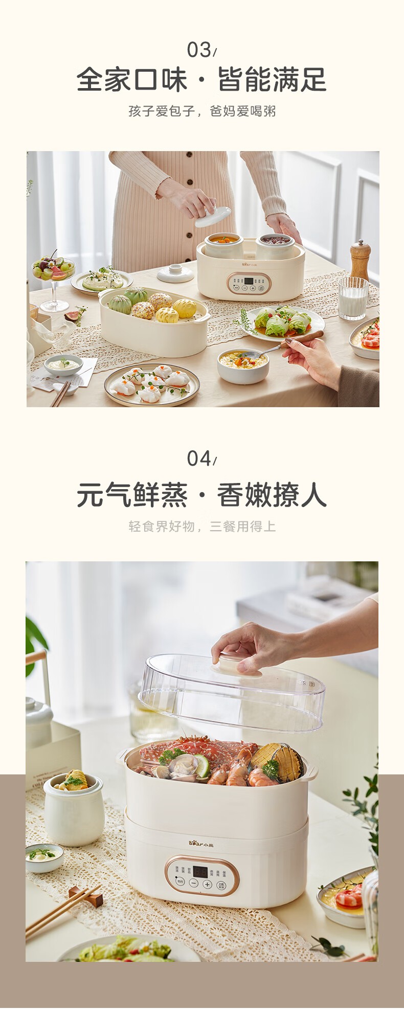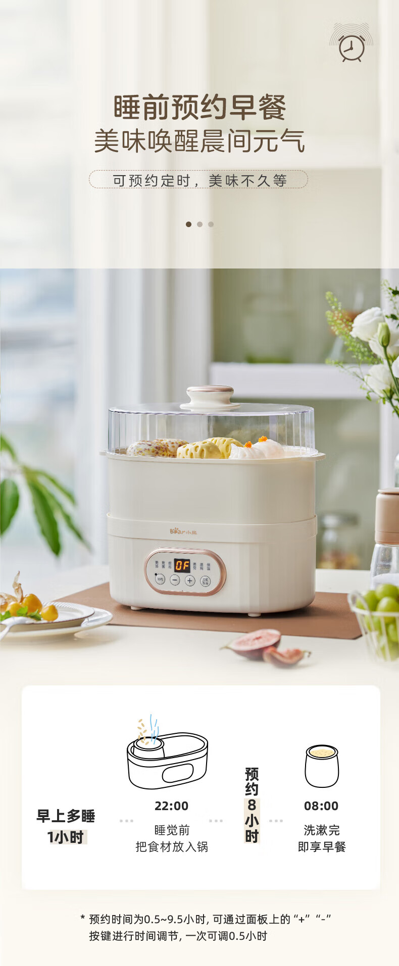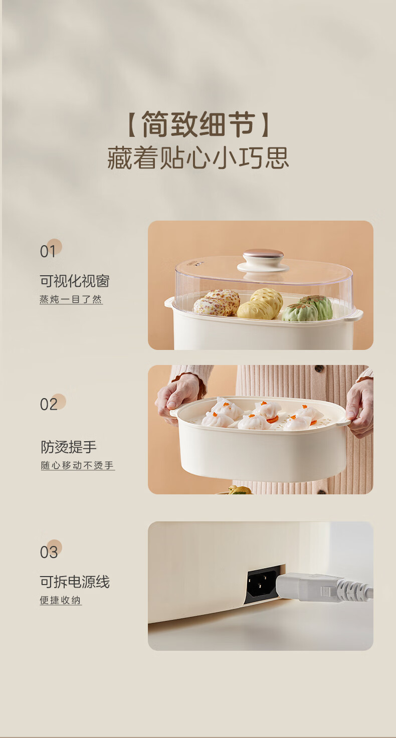 小熊电炖锅 电炖盅 煲汤锅炖汤锅 隔水炖 婴儿煮粥锅熬粥燕窝带蒸笼可预约定时DDZ-C10V1 1L