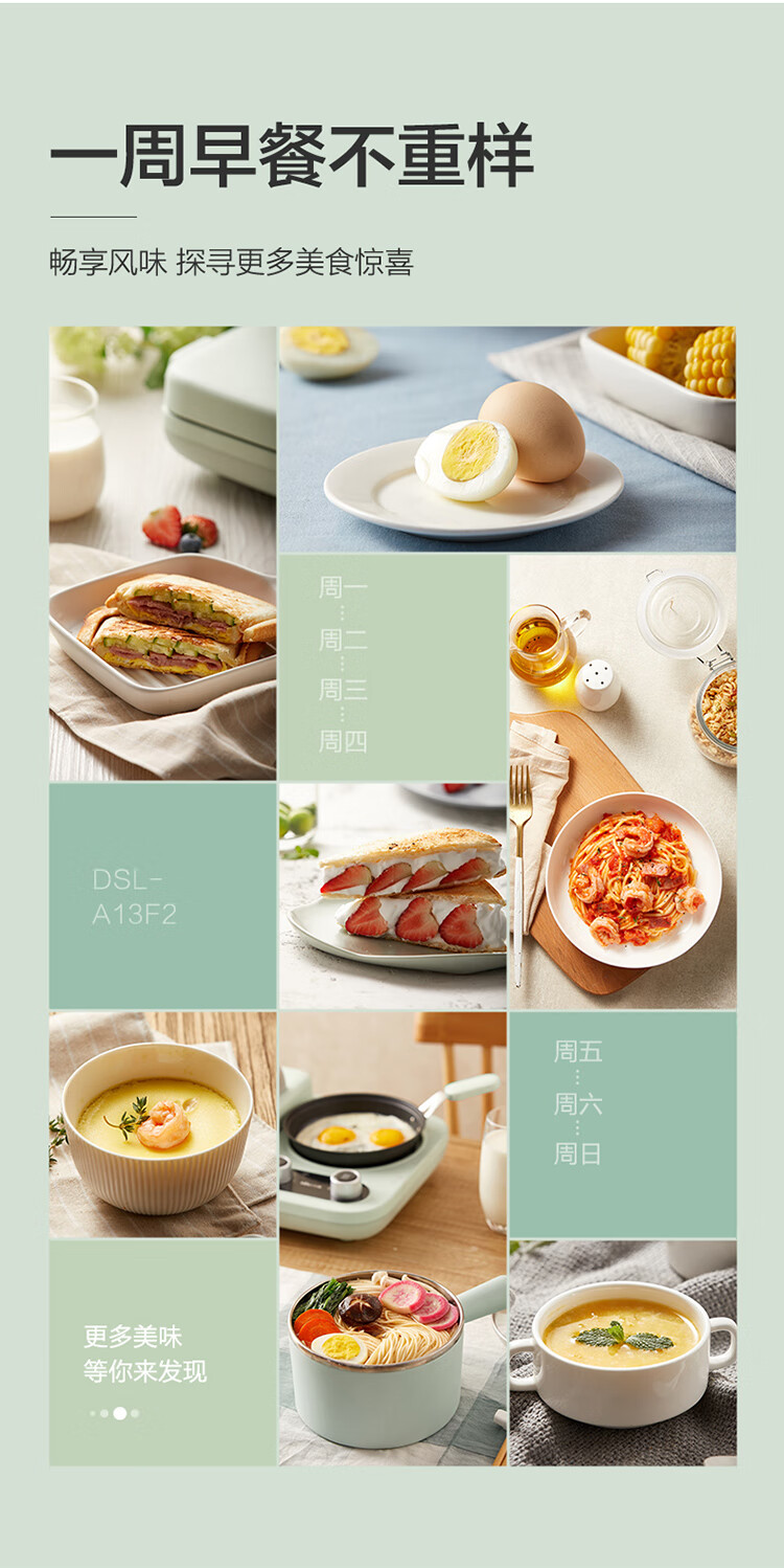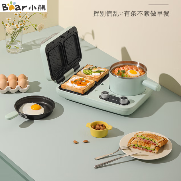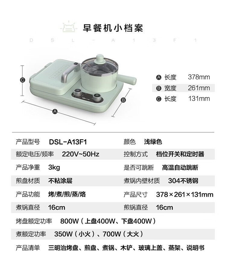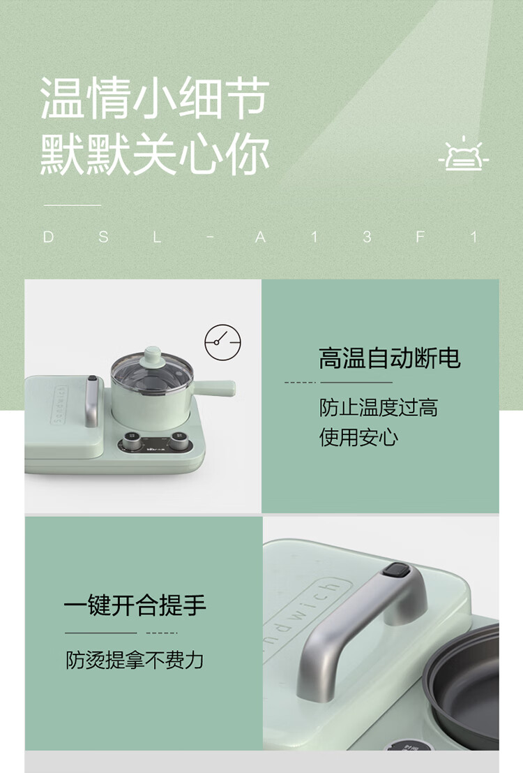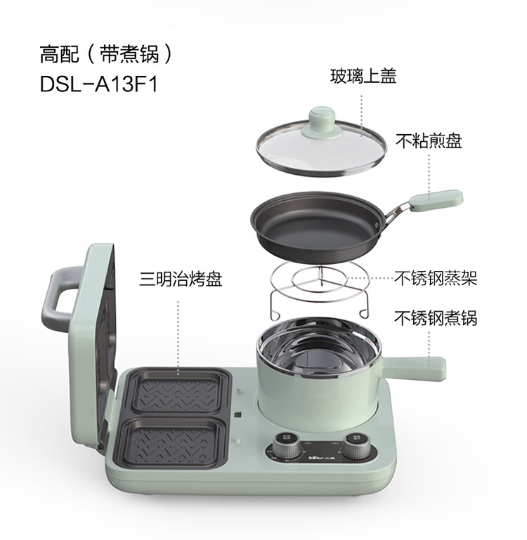 小熊早餐机 三明治早餐机多士炉面包机电饼铛电热锅电火锅电蒸锅多功能煎饼锅 DSL-A13F1