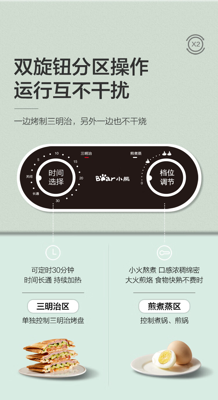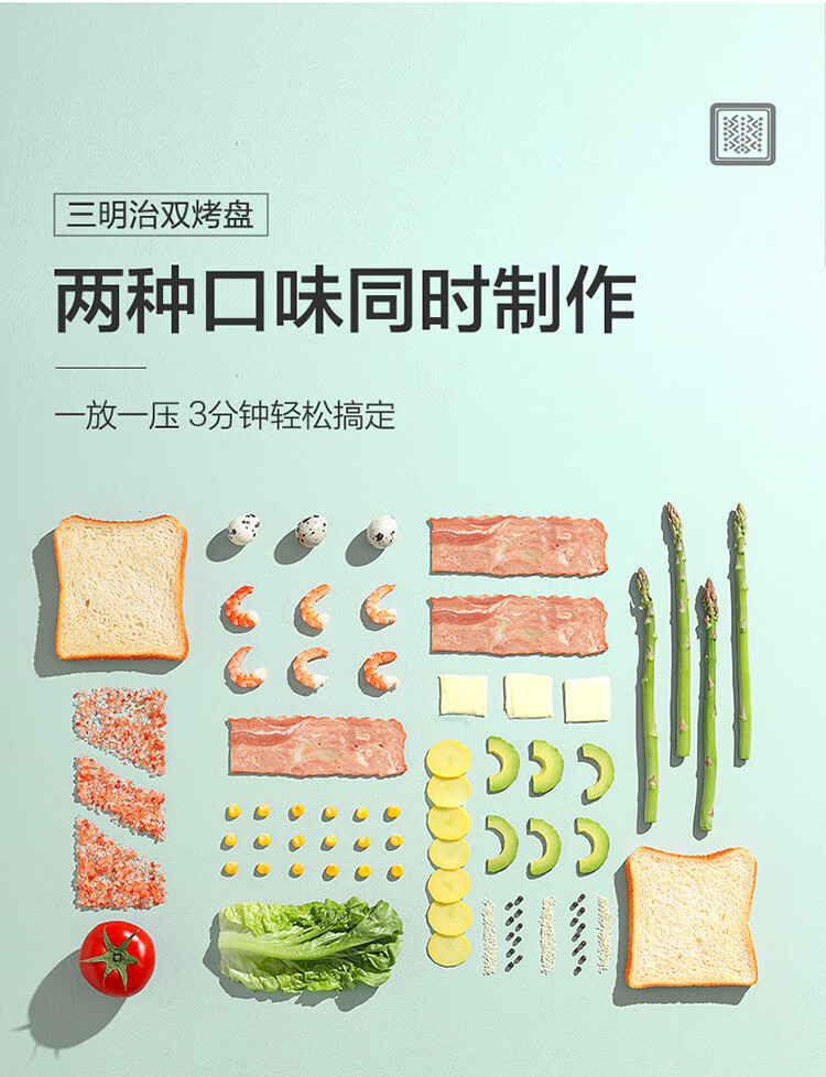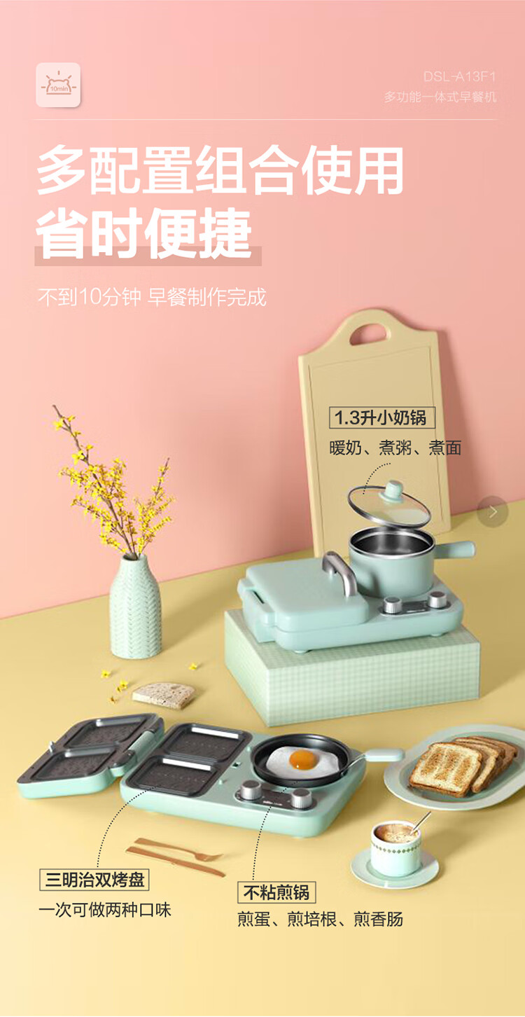 小熊早餐机 三明治早餐机多士炉面包机电饼铛电热锅电火锅电蒸锅多功能煎饼锅 DSL-A13F1