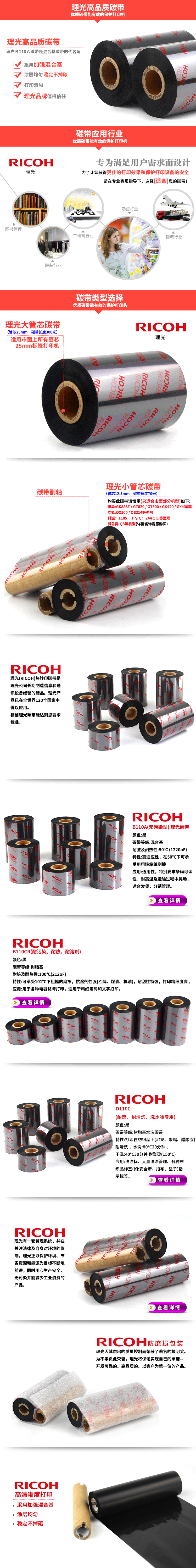 理光(RICOH) 全树脂基碳带 不干胶 标签机色带 热转印 条码打印机碳带 110mm*100m