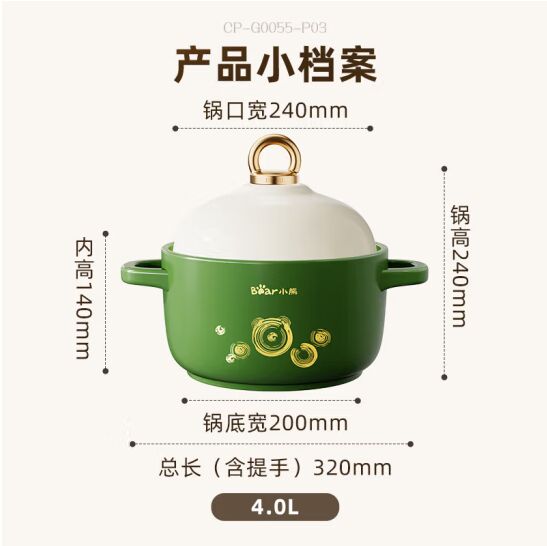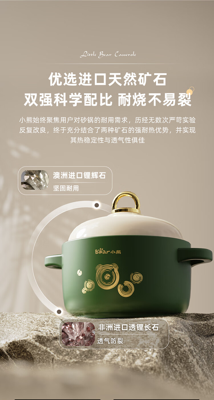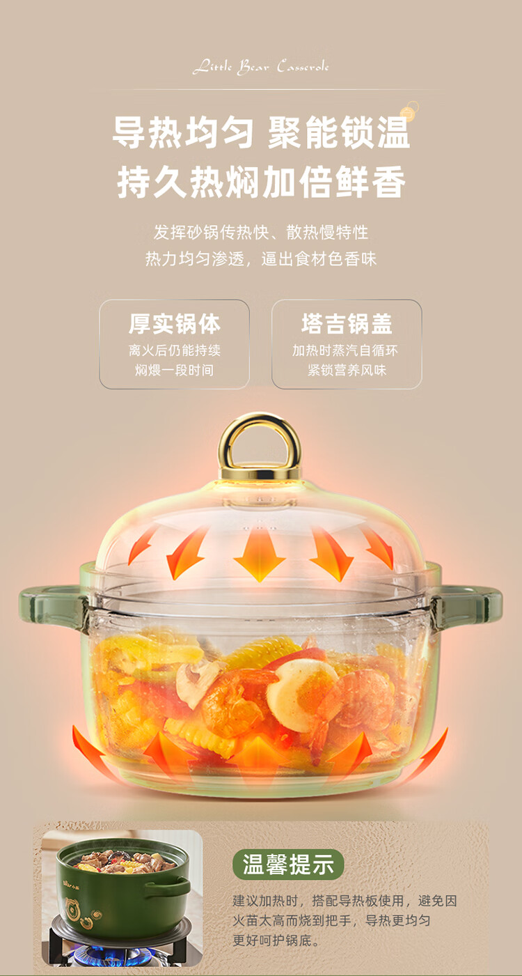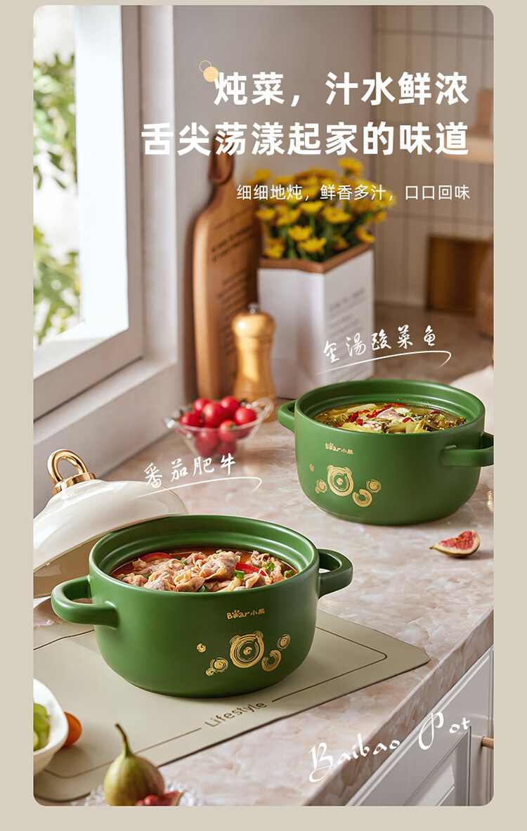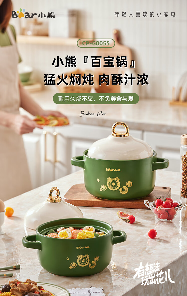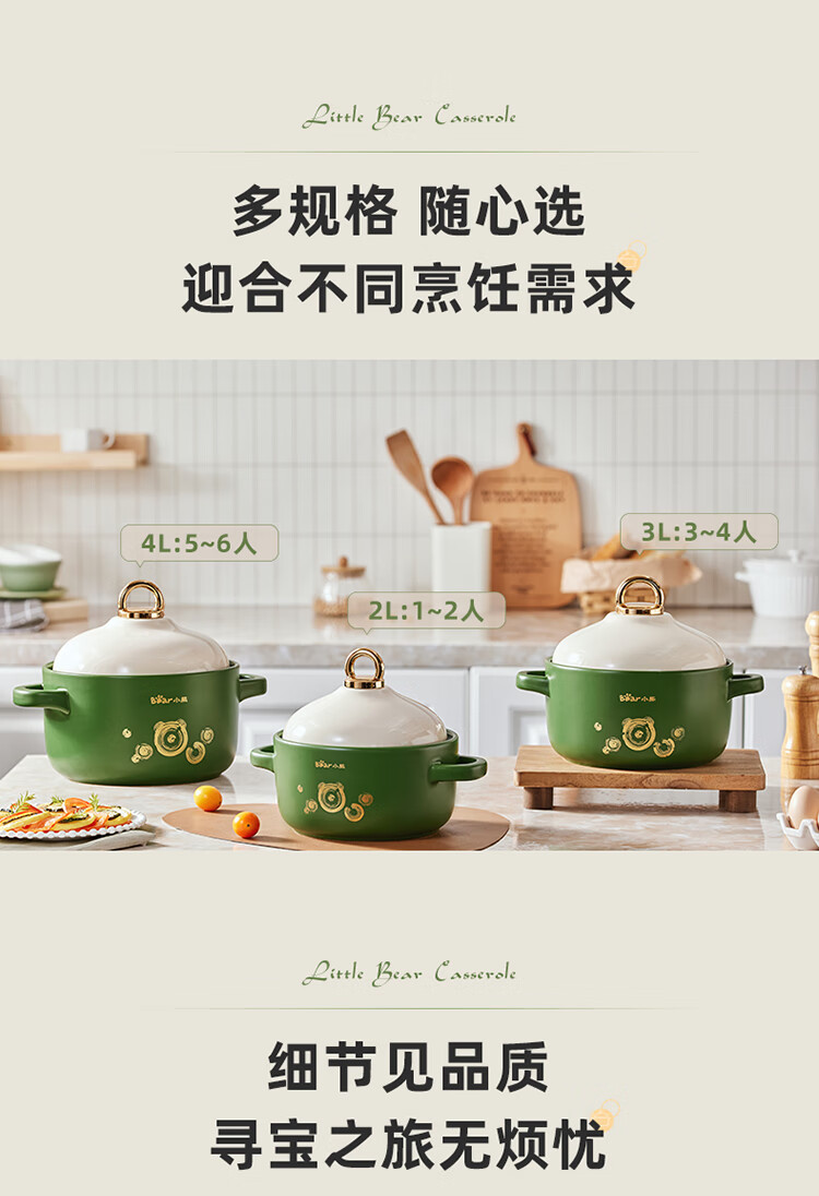 小熊伊万(BEAREWAN)砂锅 砂锅煲汤大号炖锅燃气灶陶瓷锅沙锅瓦煲 CP-G0055-P03 4L
