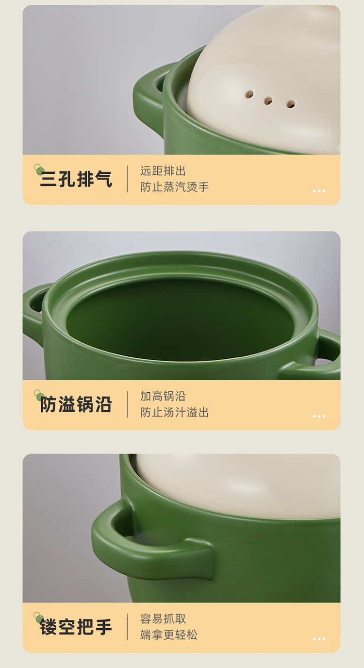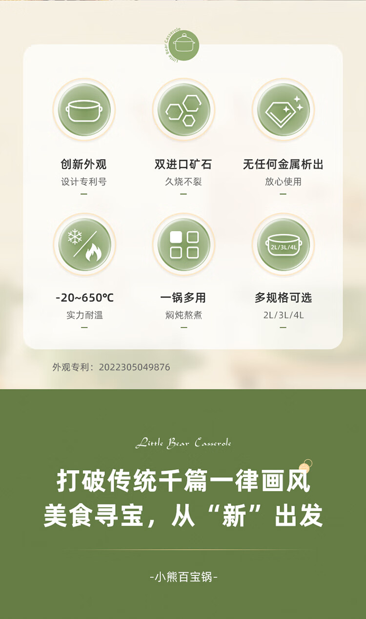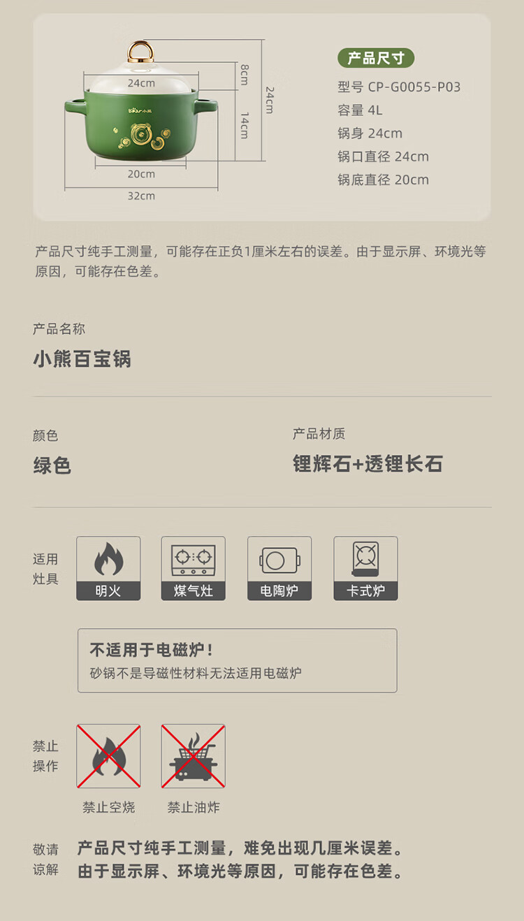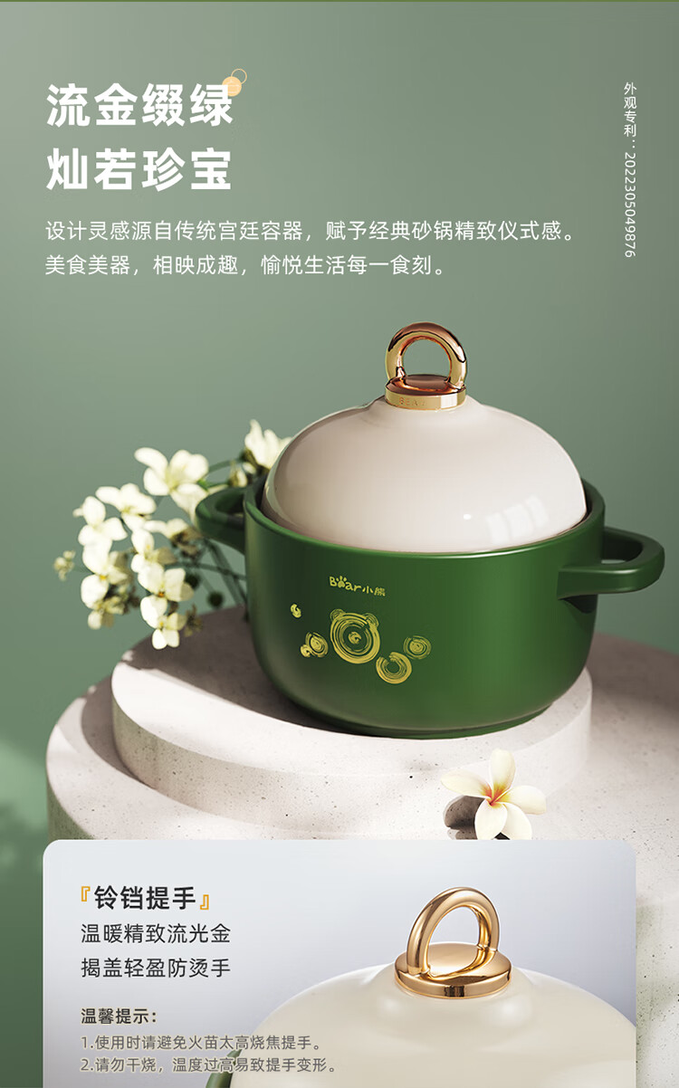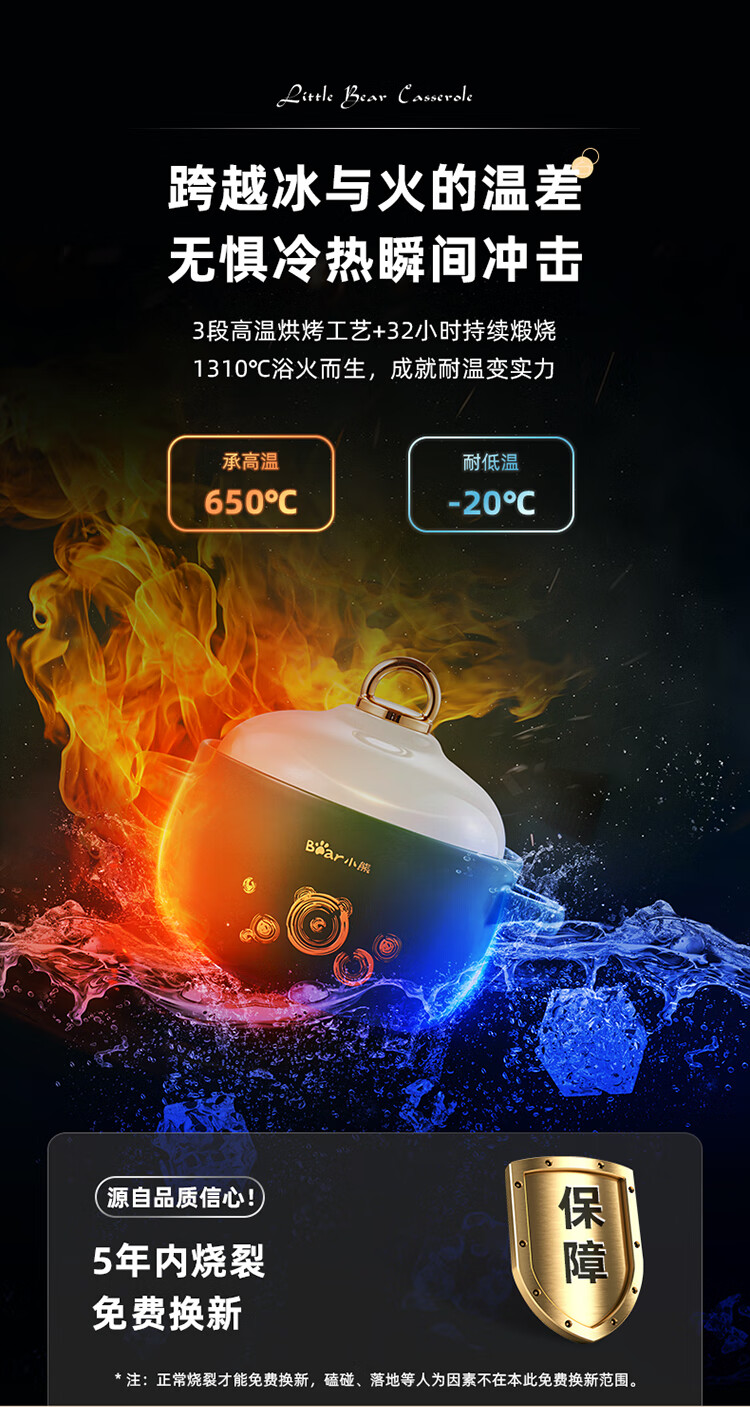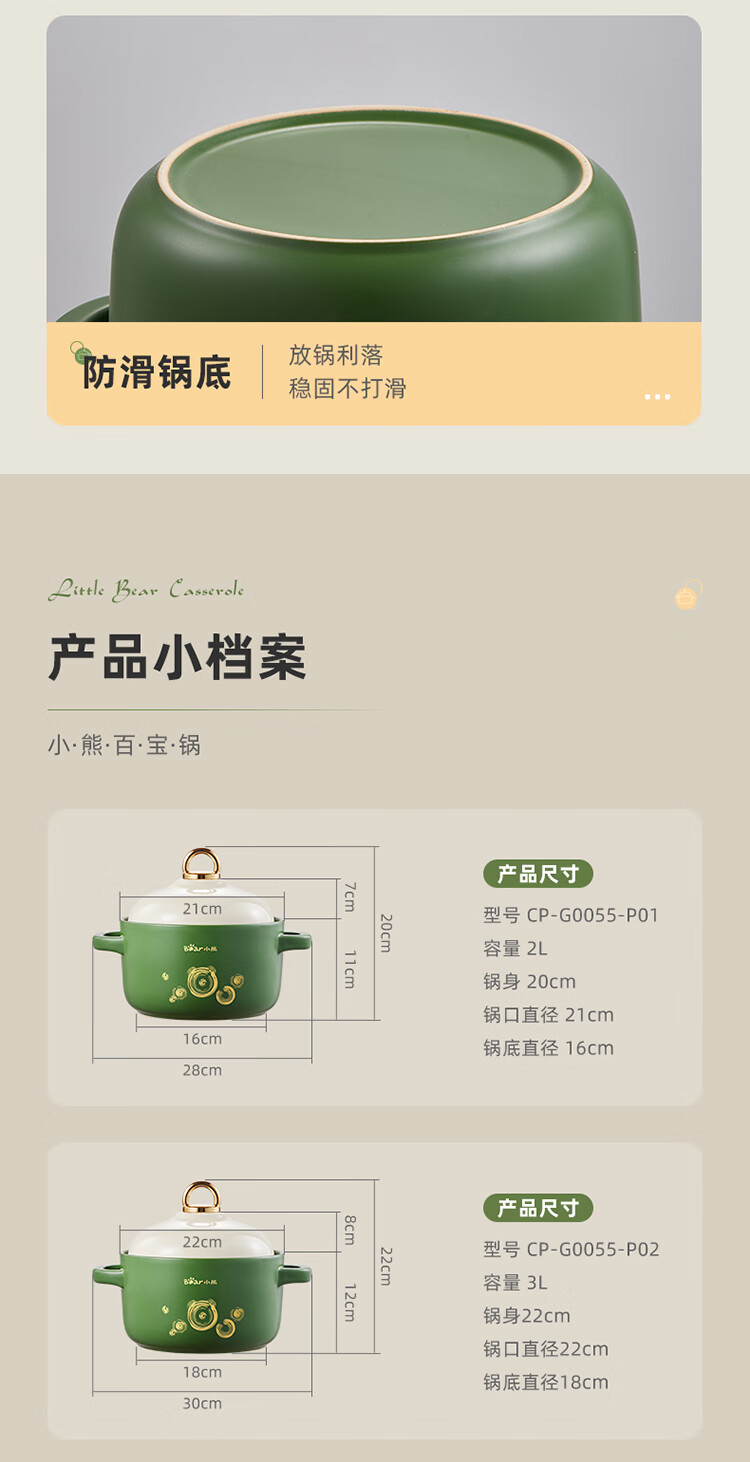 小熊伊万(BEAREWAN)砂锅 砂锅煲汤大号炖锅燃气灶陶瓷锅沙锅瓦煲 CP-G0055-P03 4L