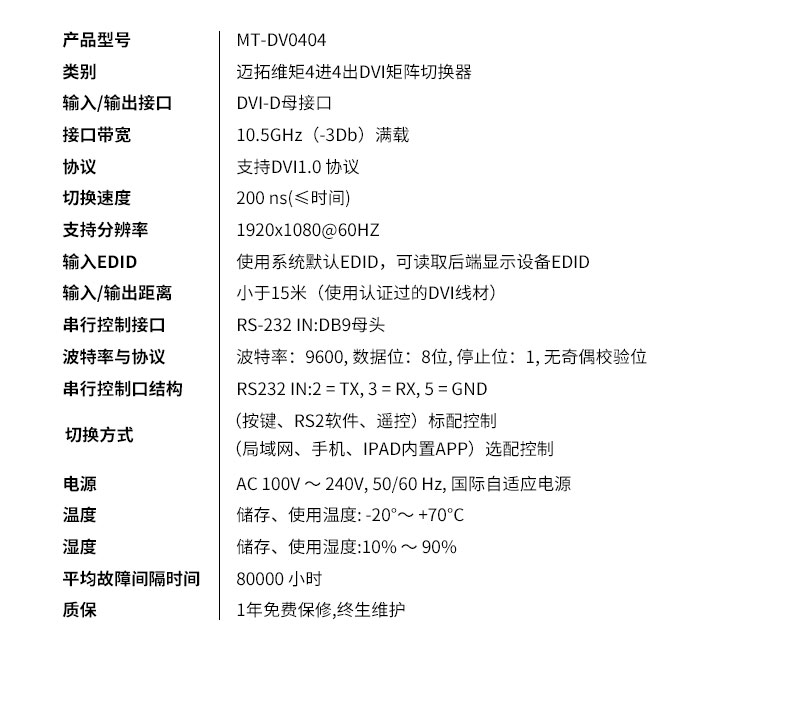 迈拓维矩(MT-viki) DV0404 DVI矩阵切换器4进4出视频会议主机 高清信号分配器 yykj-240104145855