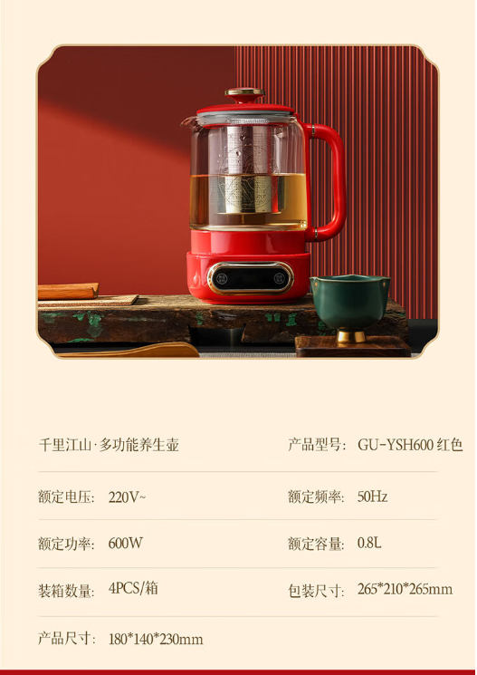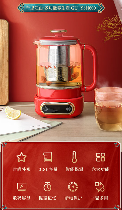 故宫文化(THE FORBIDDEN CITY CULTURE)千里江山·多功能壶GU-YSH600红色