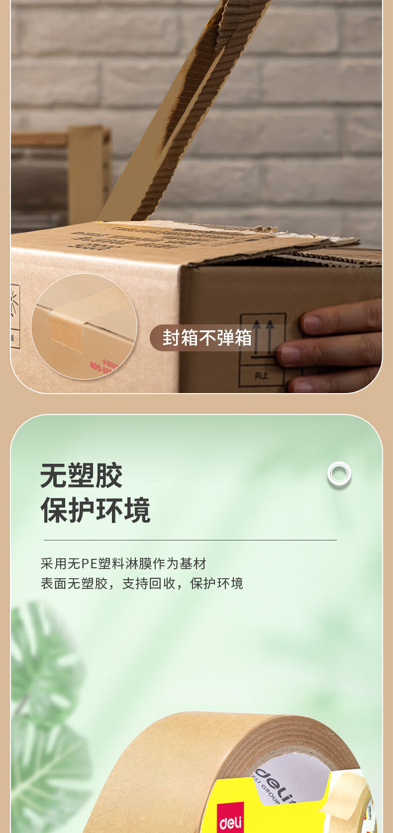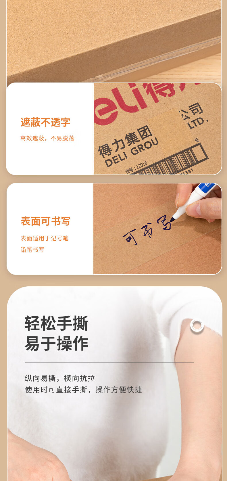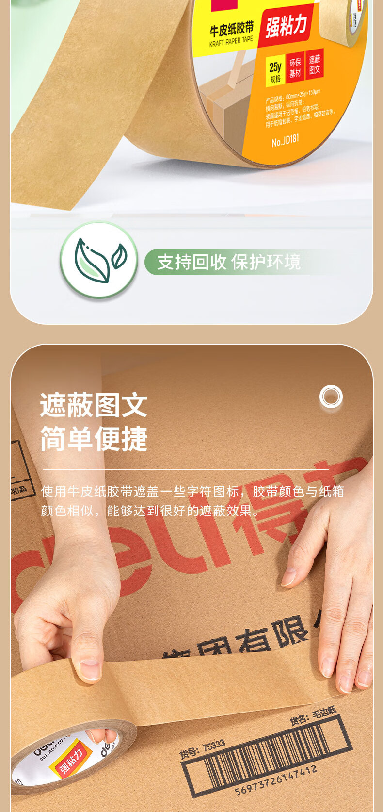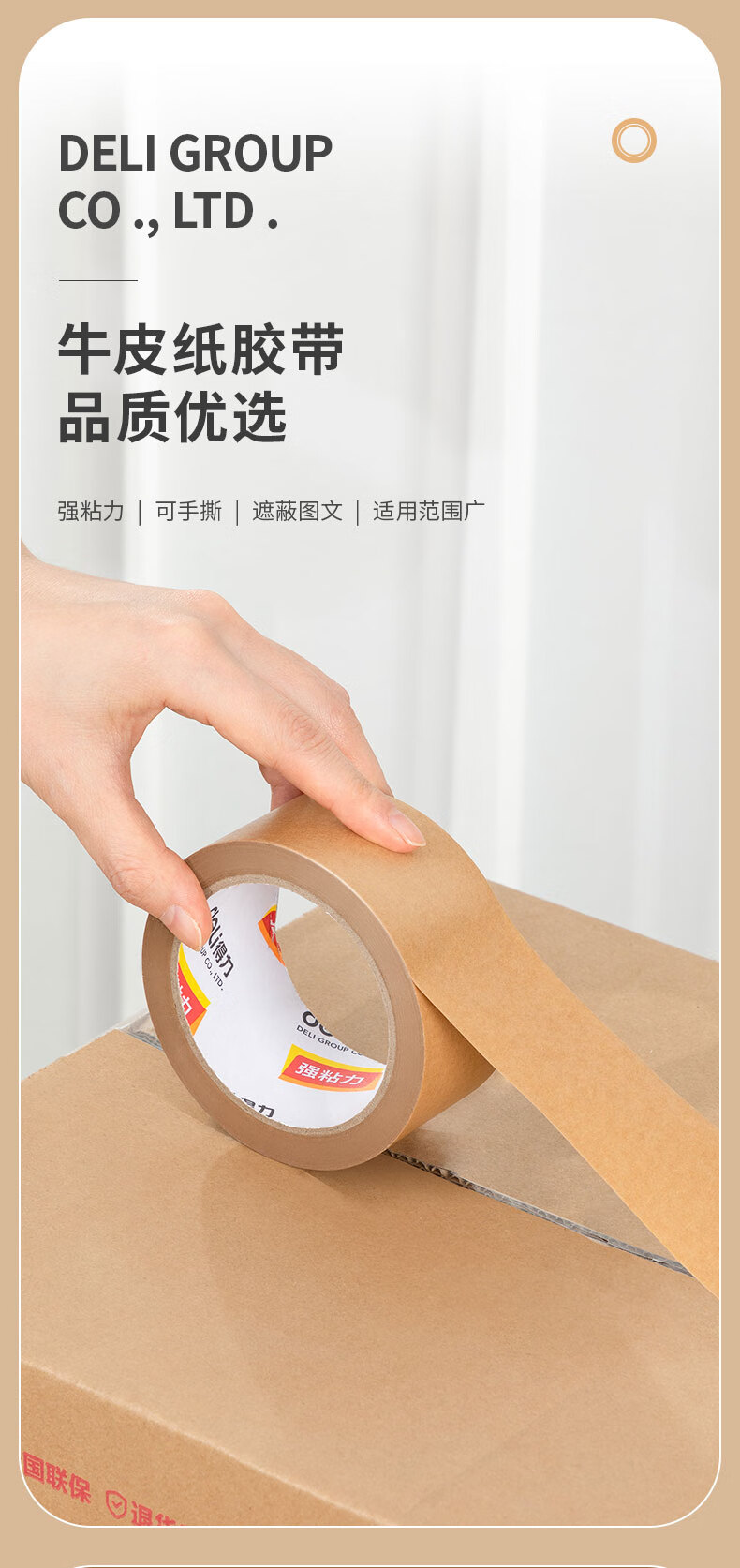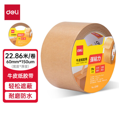 得力(deli)JL181牛皮纸胶带 60mm*25y*150μm 标识胶带不透明嵌缝带 1卷装
