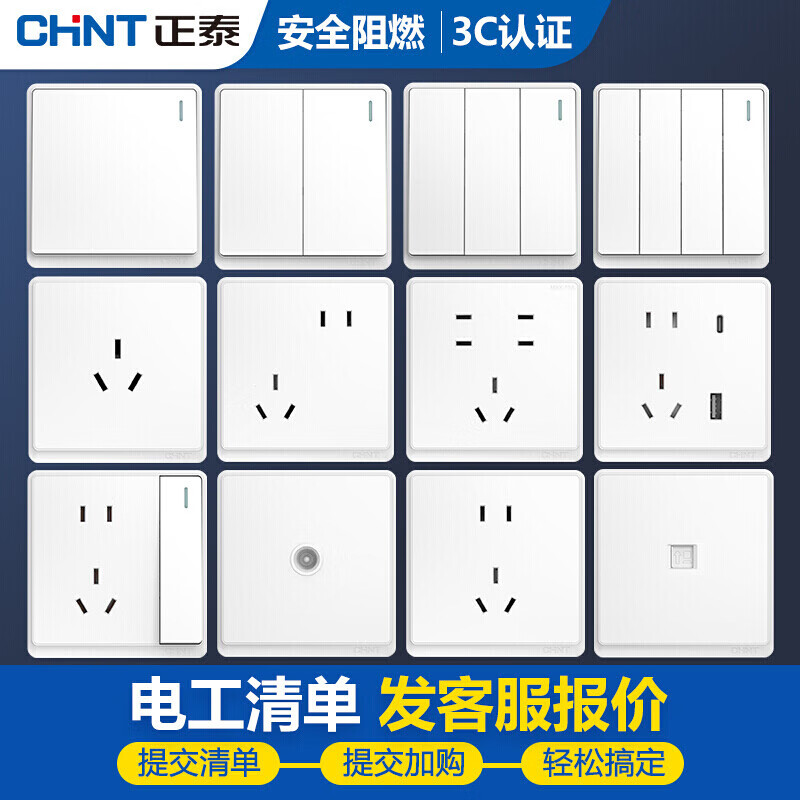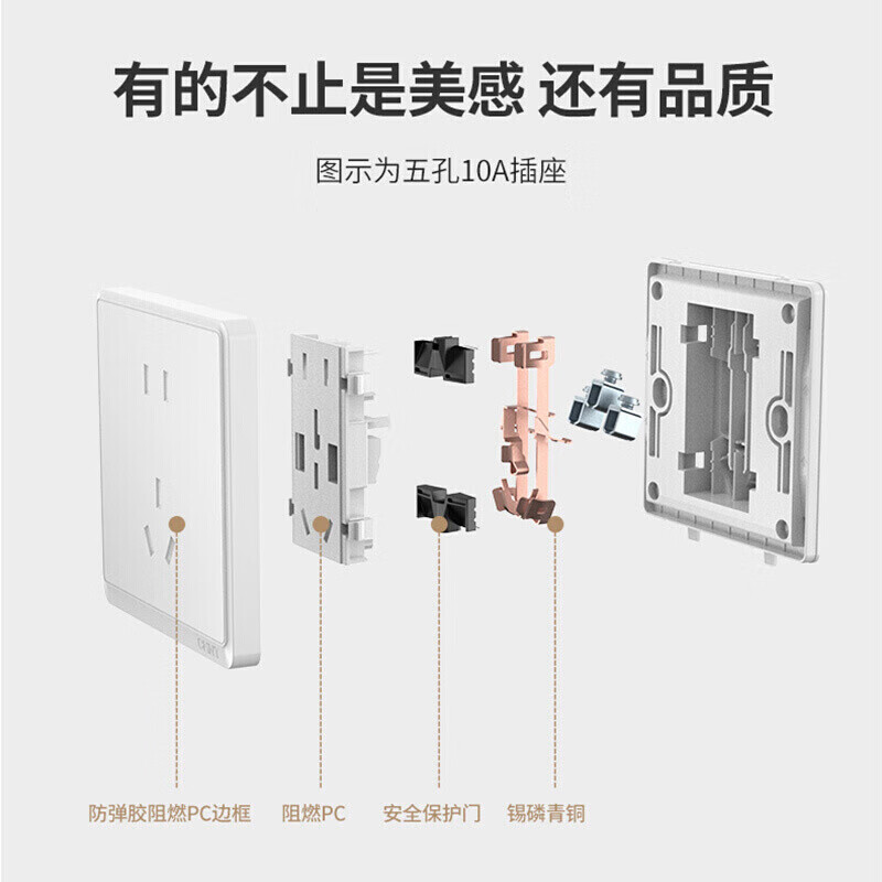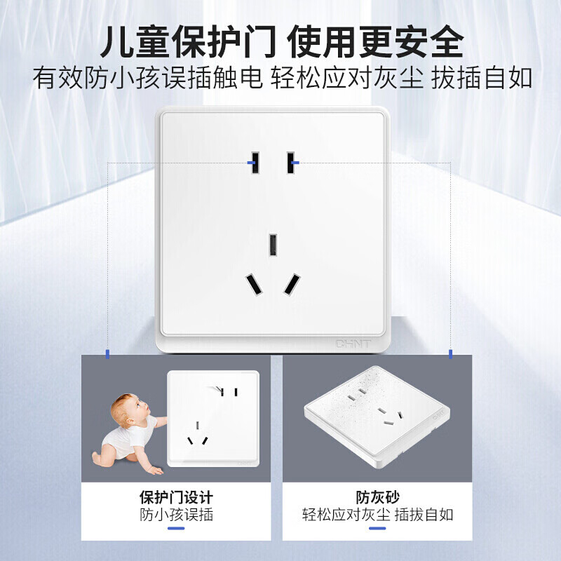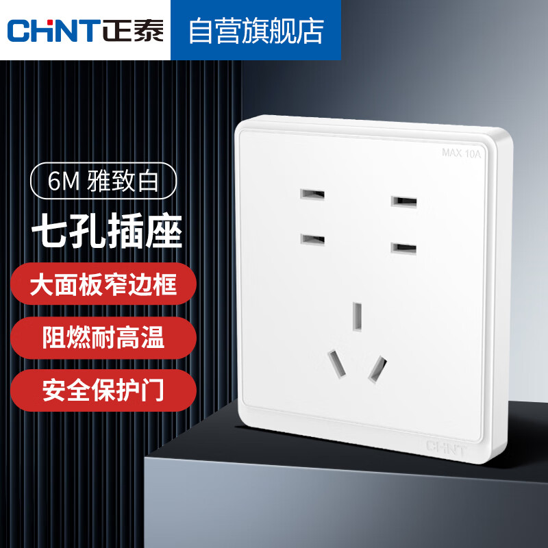 正泰(CHNT)开关插座86型墙壁面板家用暗装窄边框面板 七孔插座 NEW6M白色26549
