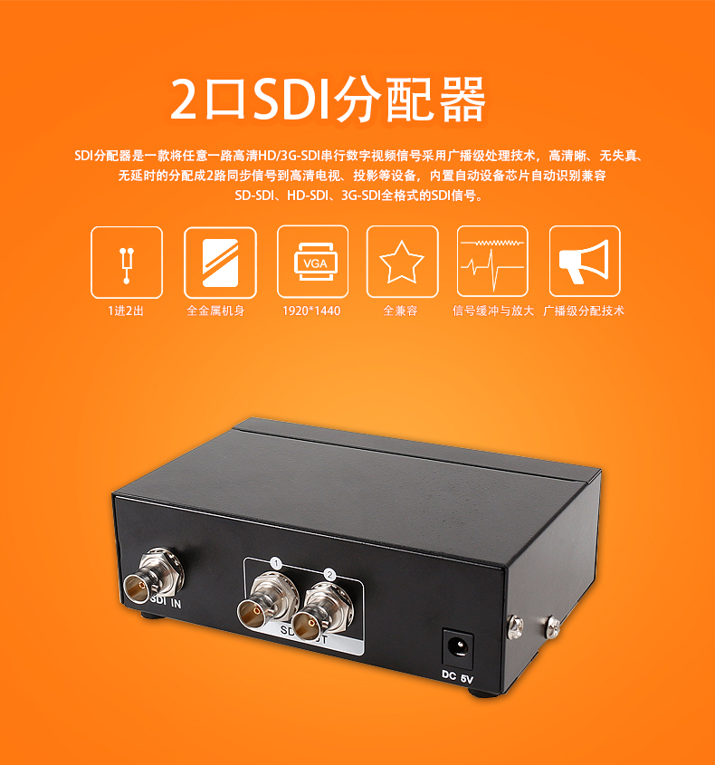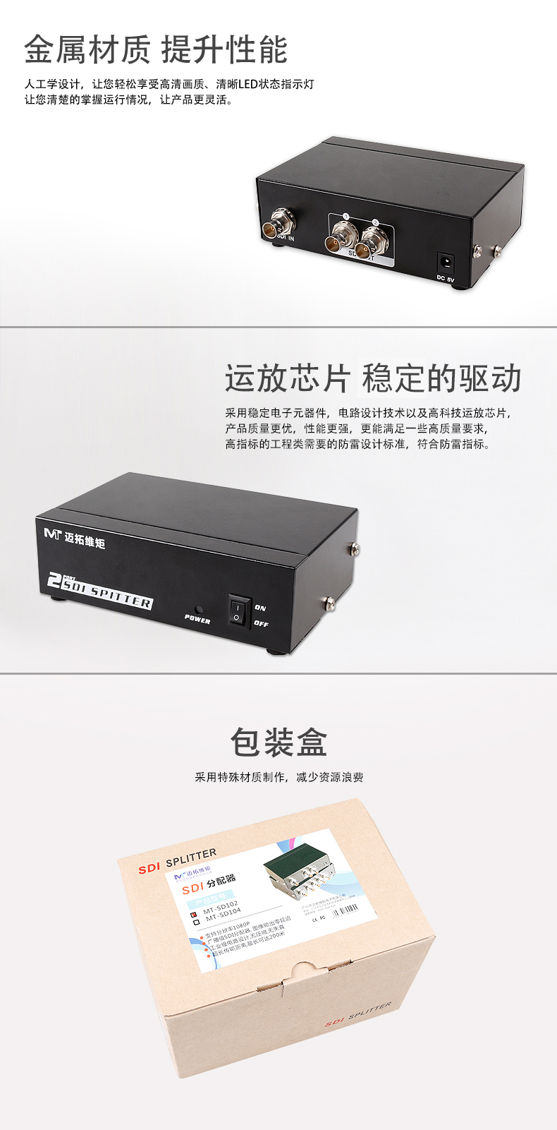 迈拓维矩MT-SD102 sdi分配器1进2出高清一分二视频分支器中继器1080p