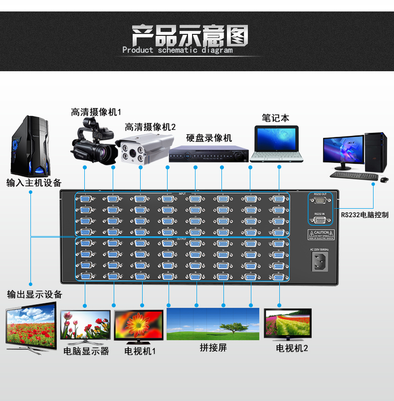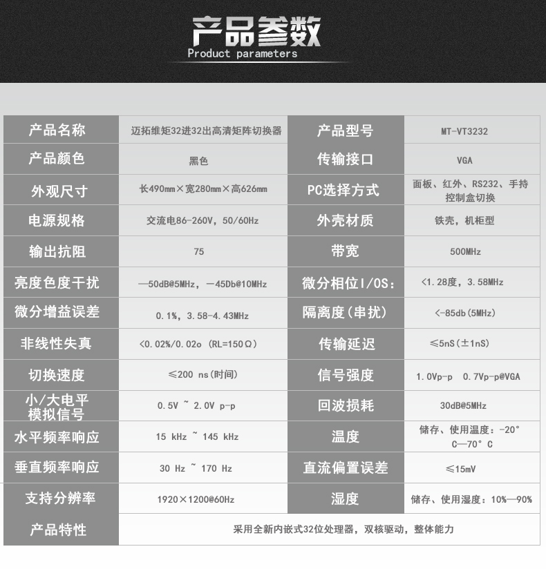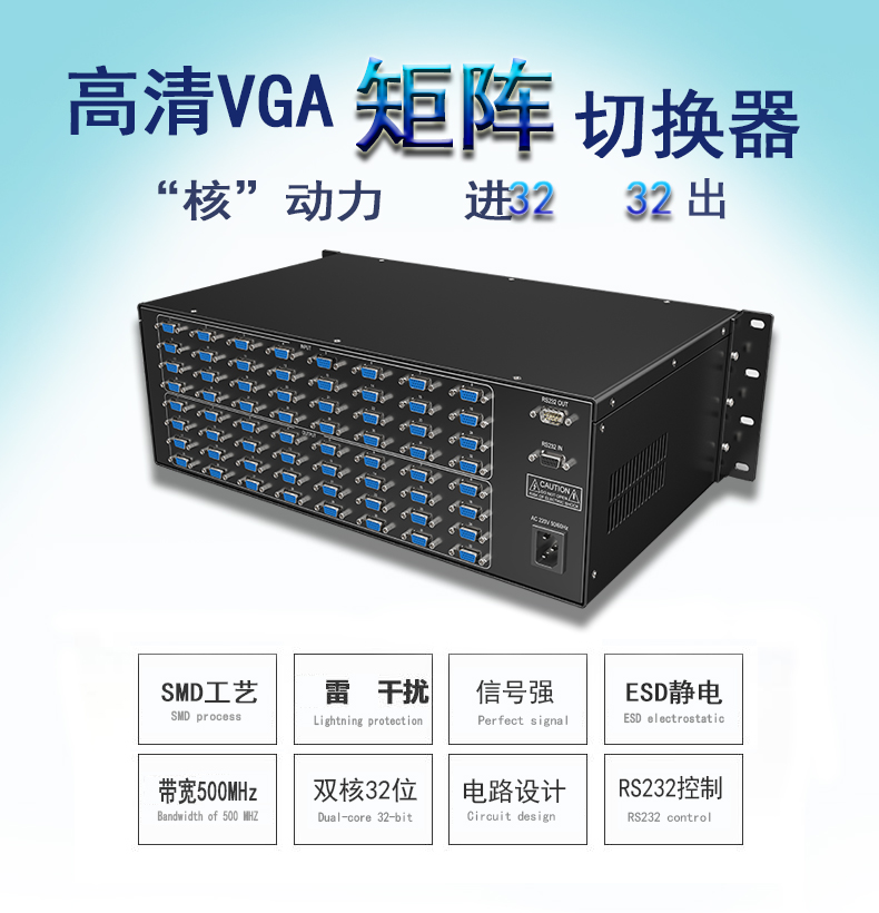 迈拓维矩MT-VT3232 vga矩阵切换器32进32出高清监控视频矩阵切换器