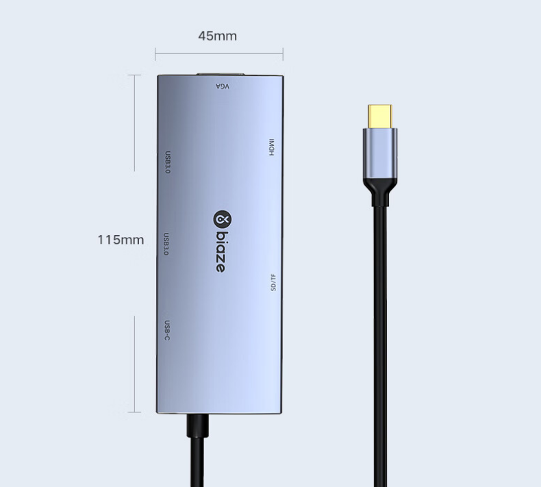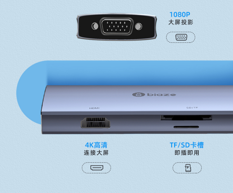 毕亚兹 Type-C扩展坞 USB-C转HDMI/VGA转换器4K投屏TF/SD 七合一 R37