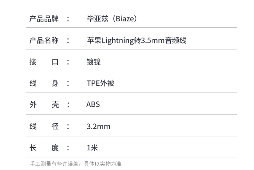 毕亚兹 lightning转3.5mm音频转接线 车载AUX音频线 Y58 yykj-240306092216