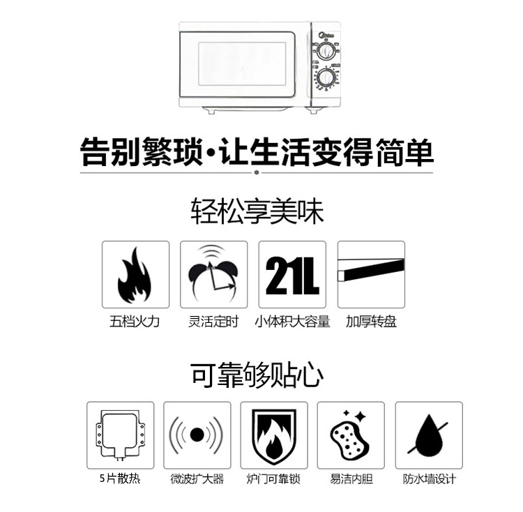 美的(Midea)M1-L213C 快捷家用微波炉 微电脑操控 转盘