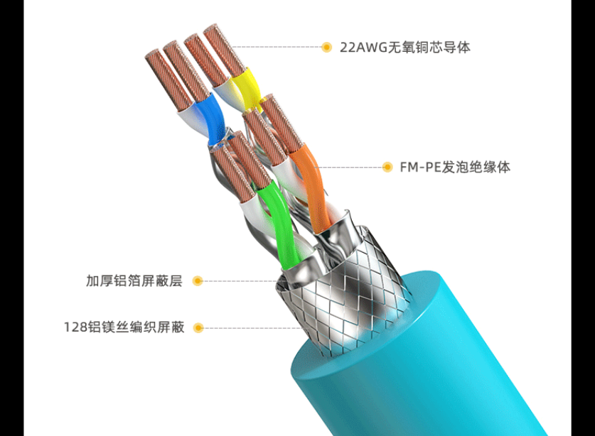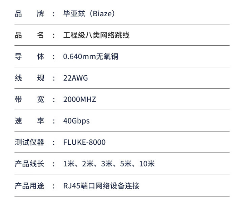 毕亚兹 八类网线低烟无卤 10米Cat8万兆网络线40G双屏蔽wx18