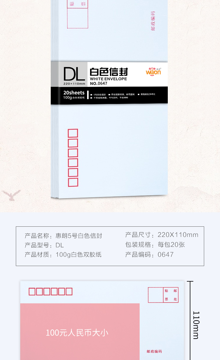 惠朗(huilang)0647-5号白色信封 邮局标准信封20张(单包) yykj-240308085536