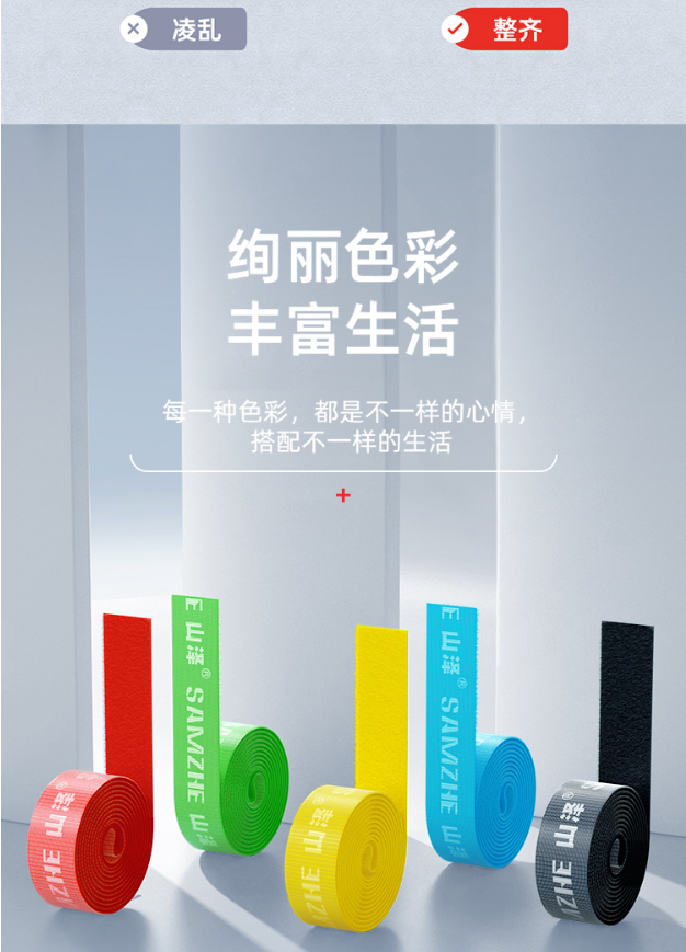 山泽(SAMZHE)魔术贴 自由裁剪电脑理线器扎/捆/绑/束线带背靠背整理带 20*1000mm 蓝色 MST-09