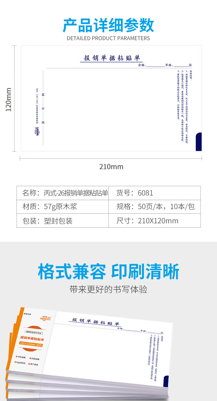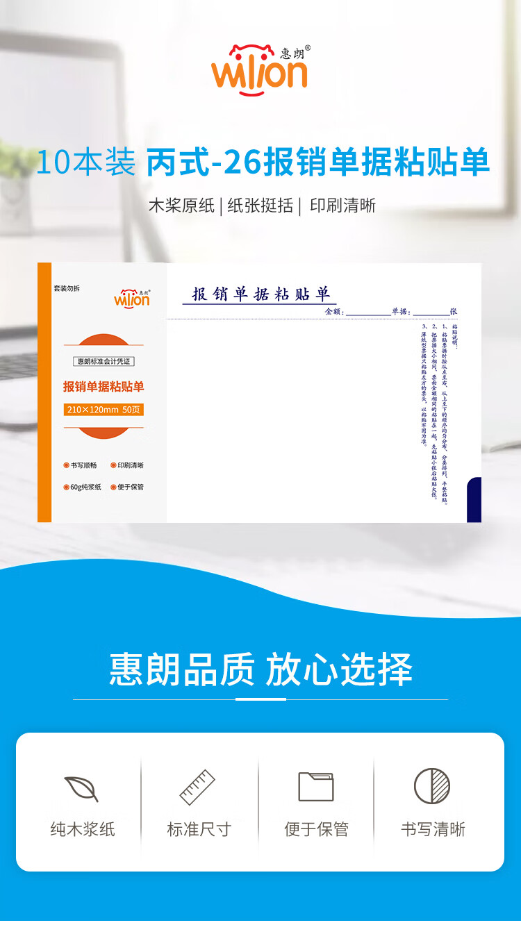 惠朗(huilang)丙式-26报销单据粘贴单 210*120mm 50页/本 10本/包 原始凭证粘贴单 6081 yykj-240308133250