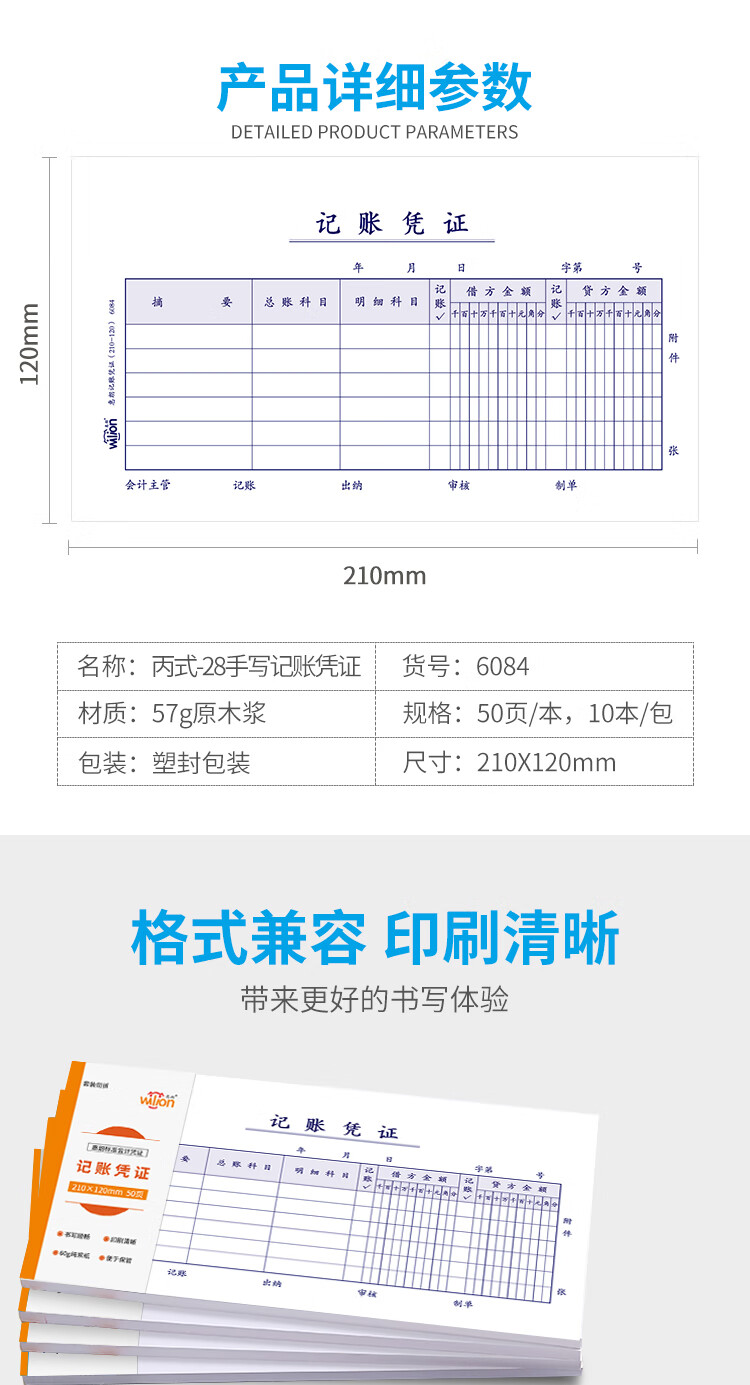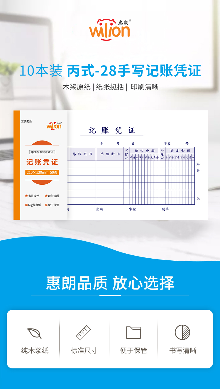 惠朗(huilang)丙式-28手写记账凭证 财务手写单据210*120mm 50页/本 10本装 6084 yykj-240308133532