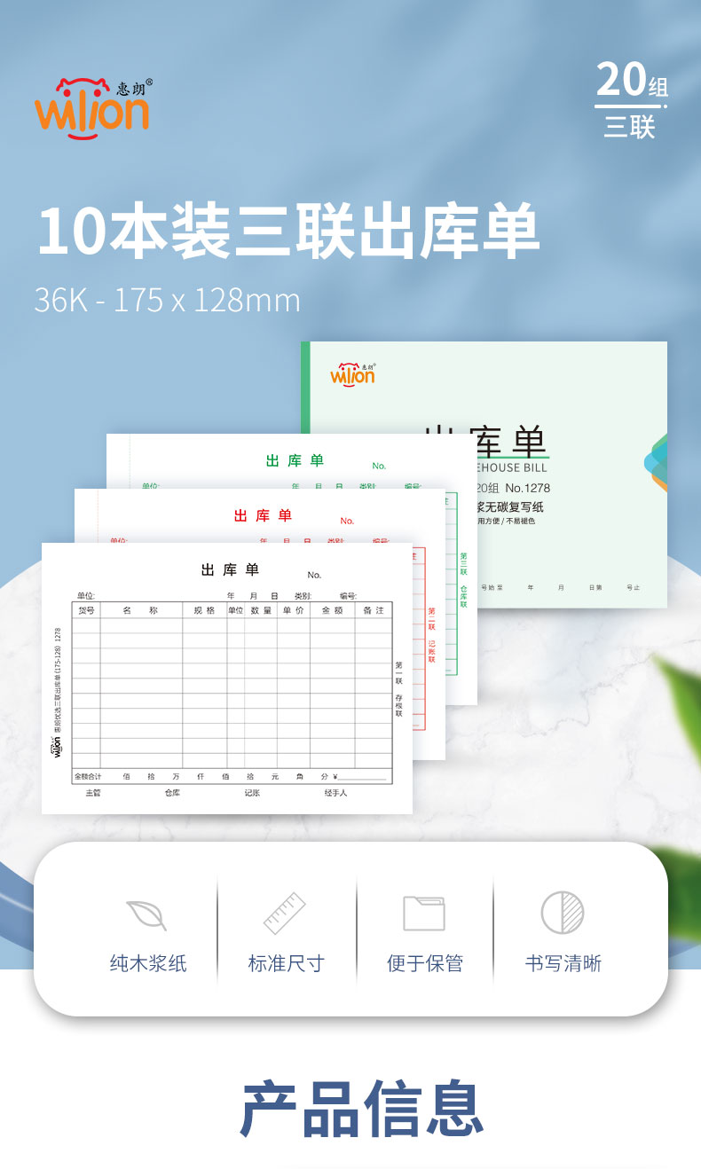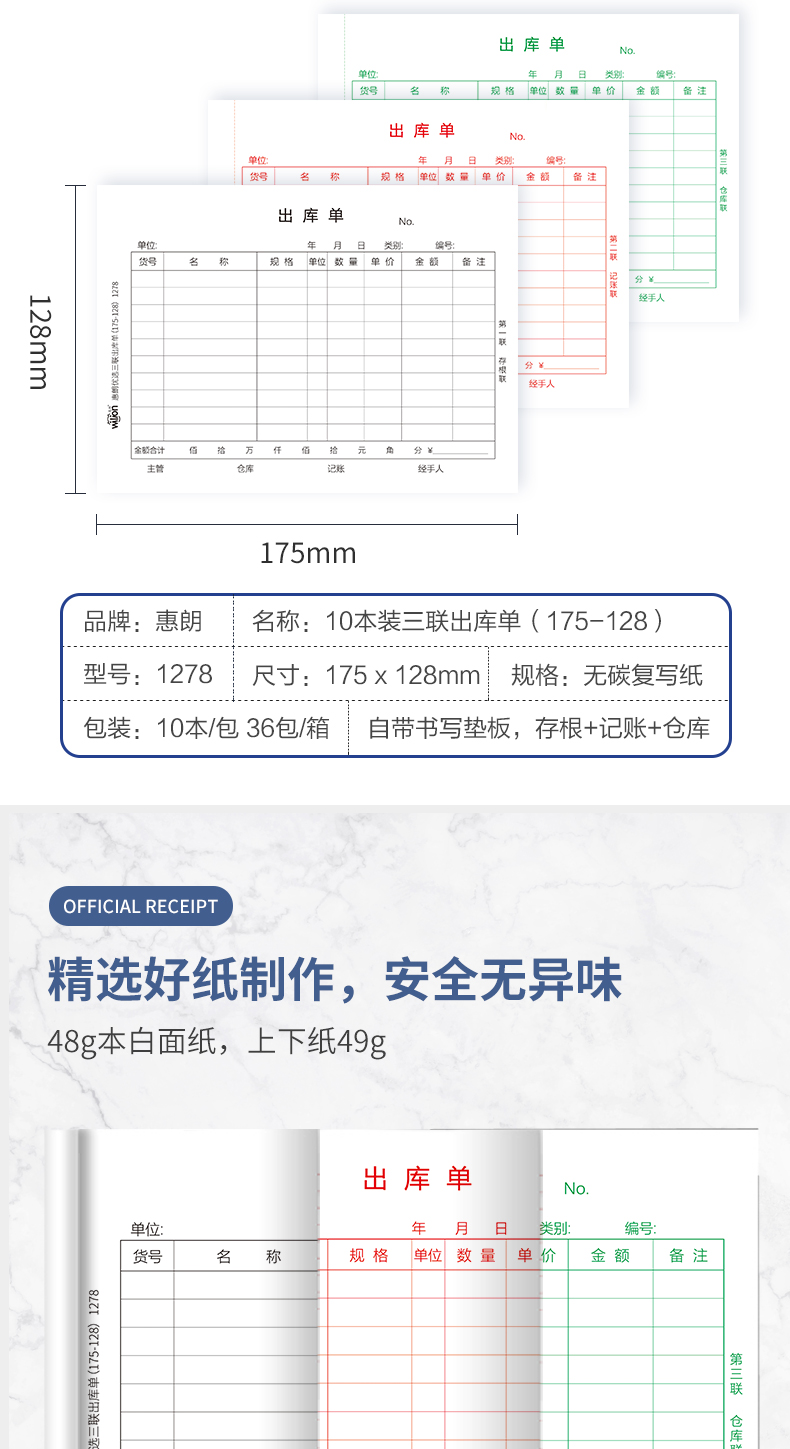 惠朗(huilang)10本装三联出库单20组 36K 175*128mm 无碳复写财务单据1278 yykj-240308133827