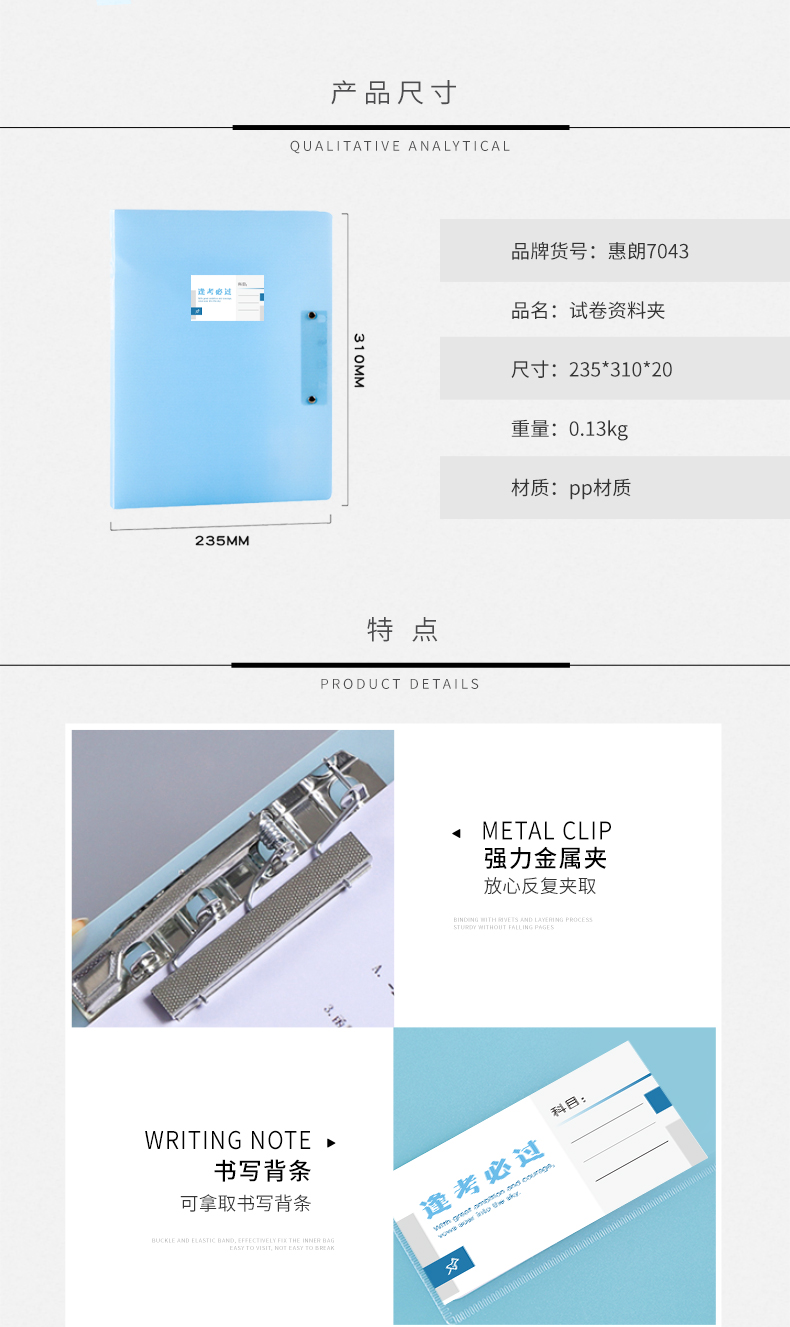 惠朗(huilang)试卷资料夹对折款学生试卷收纳朗诵签约夹板 试卷收纳 7043 yykj-240308134502