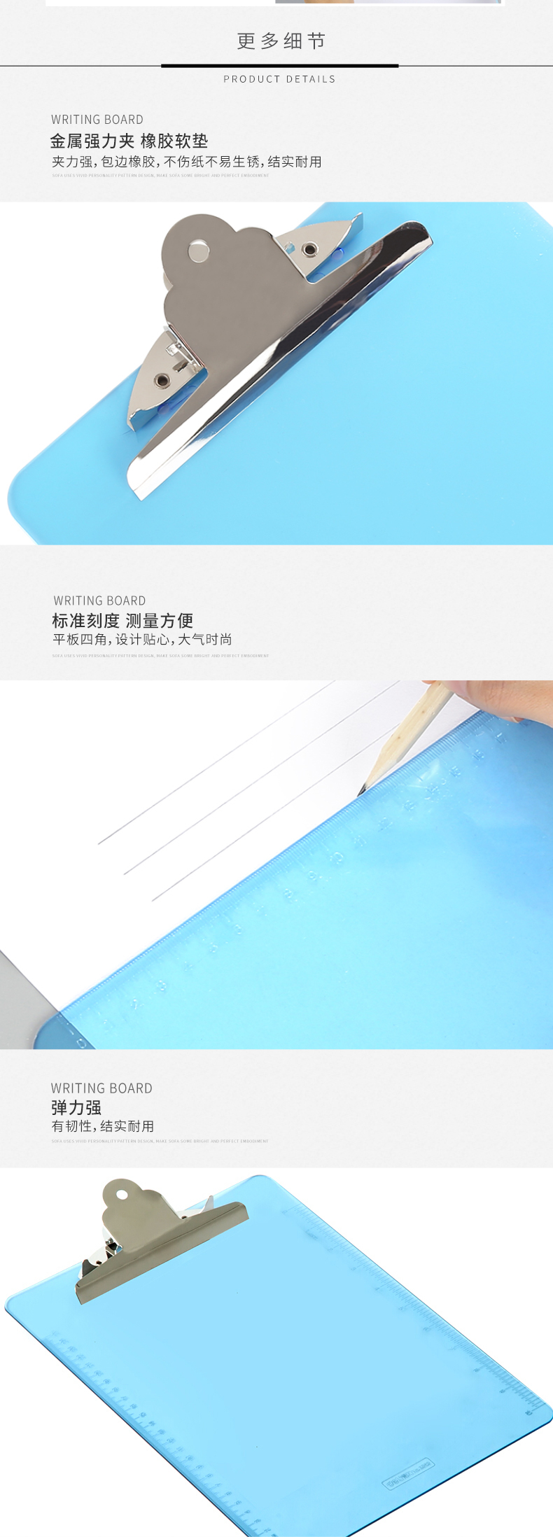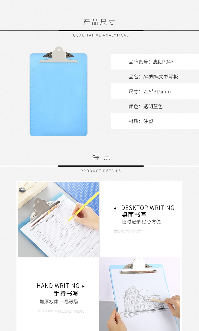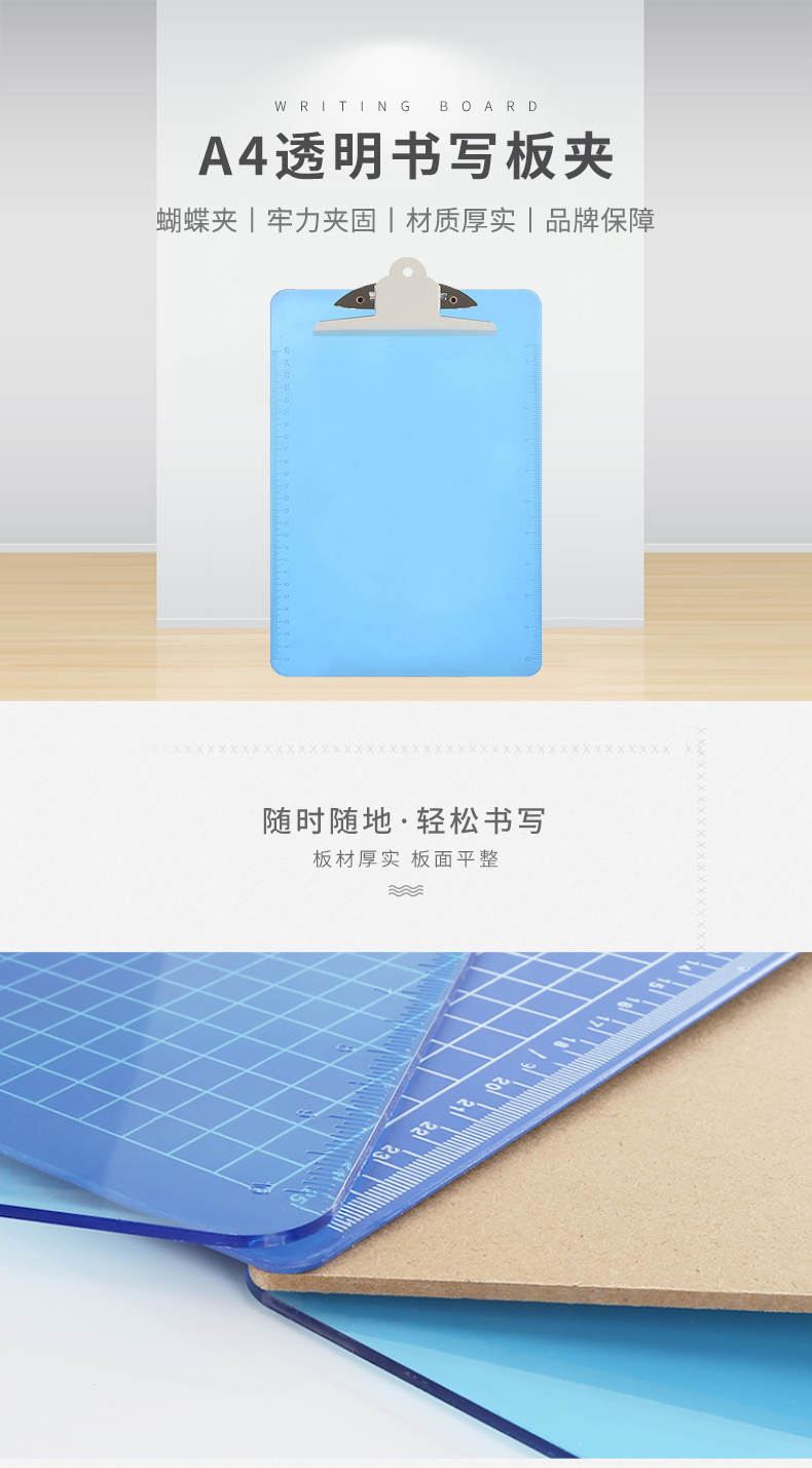 惠朗(huilang)A4透明书写板夹金属强力夹塑料文件夹 多功能写字垫板 办公用品蓝色 7047 yykj-240308140536