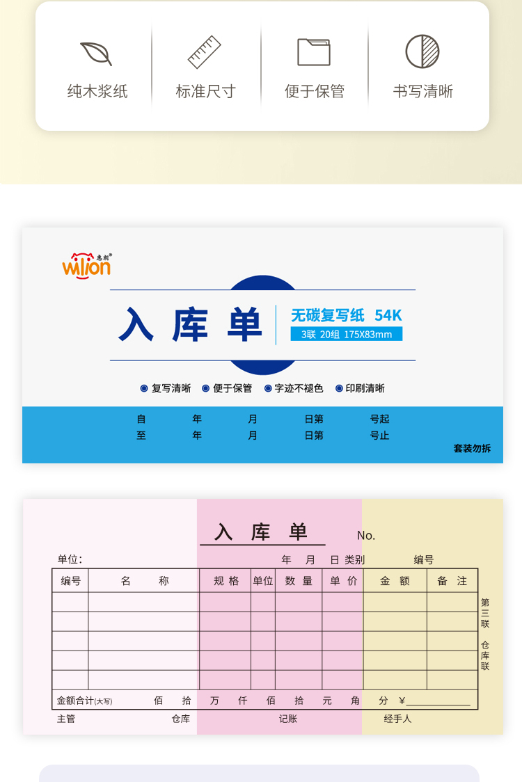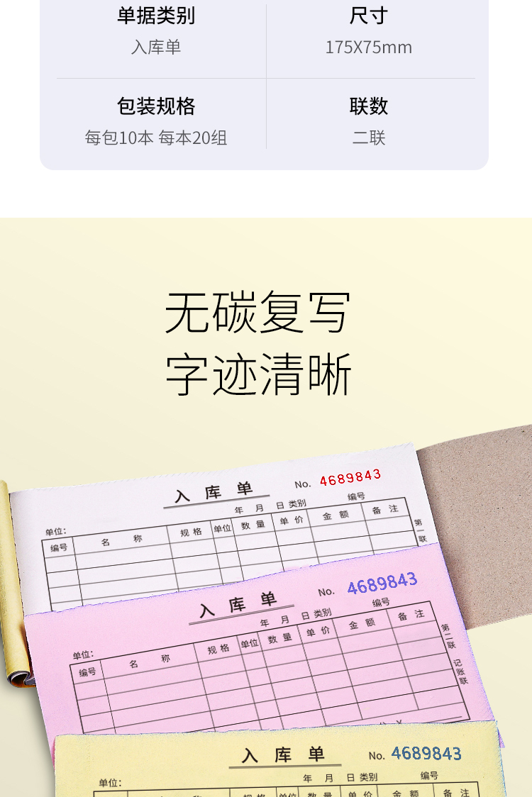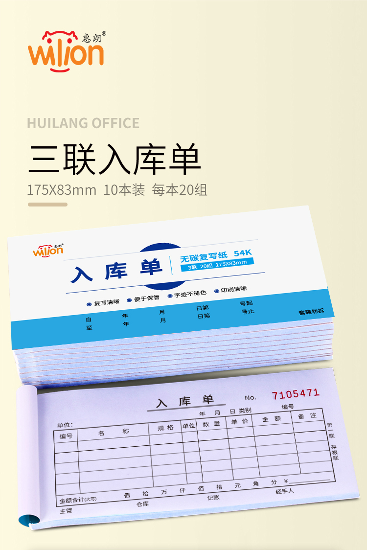 惠朗(huilang) 三联入库单 54K 175×83mm 20组10本装 无碳复写销售入库进货单据1177 yykj-240308144105
