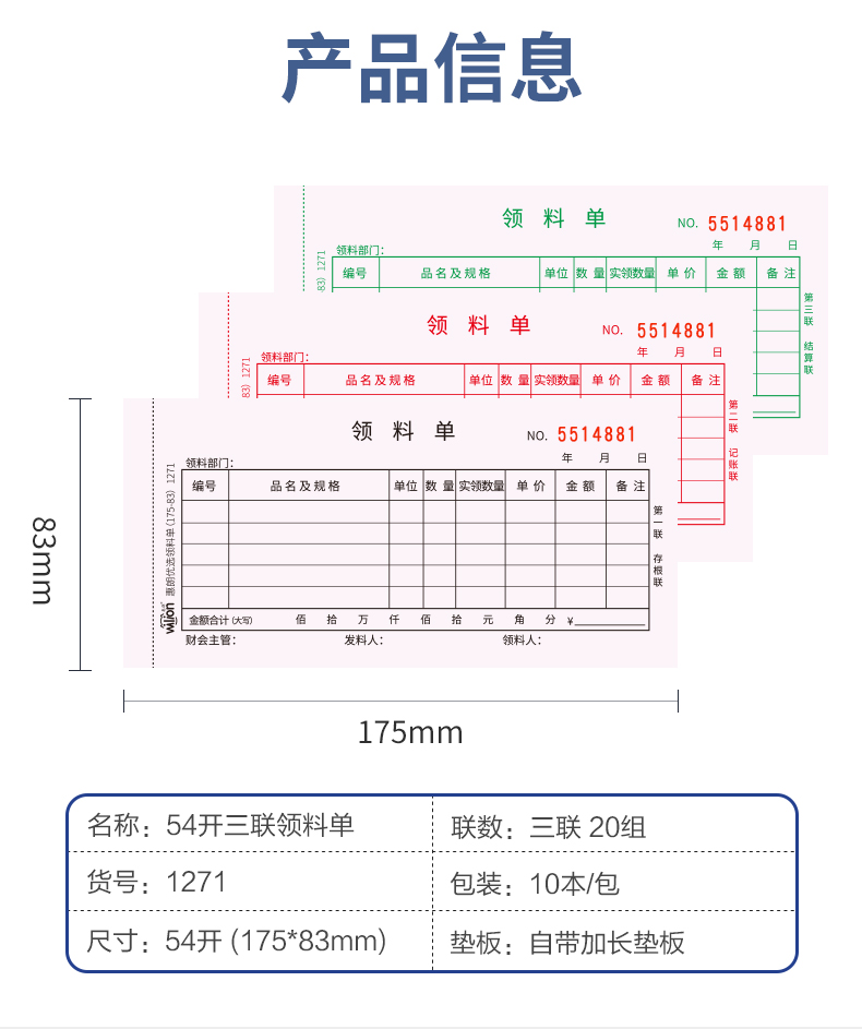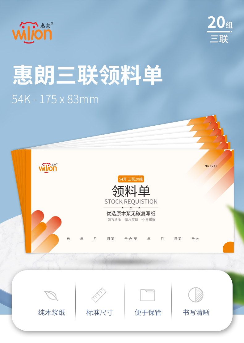 惠朗(huilang)领料单三联20组 10本/包? 54K? 1271 yykj-240308144147