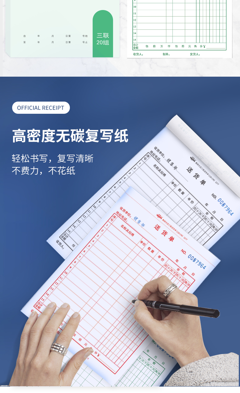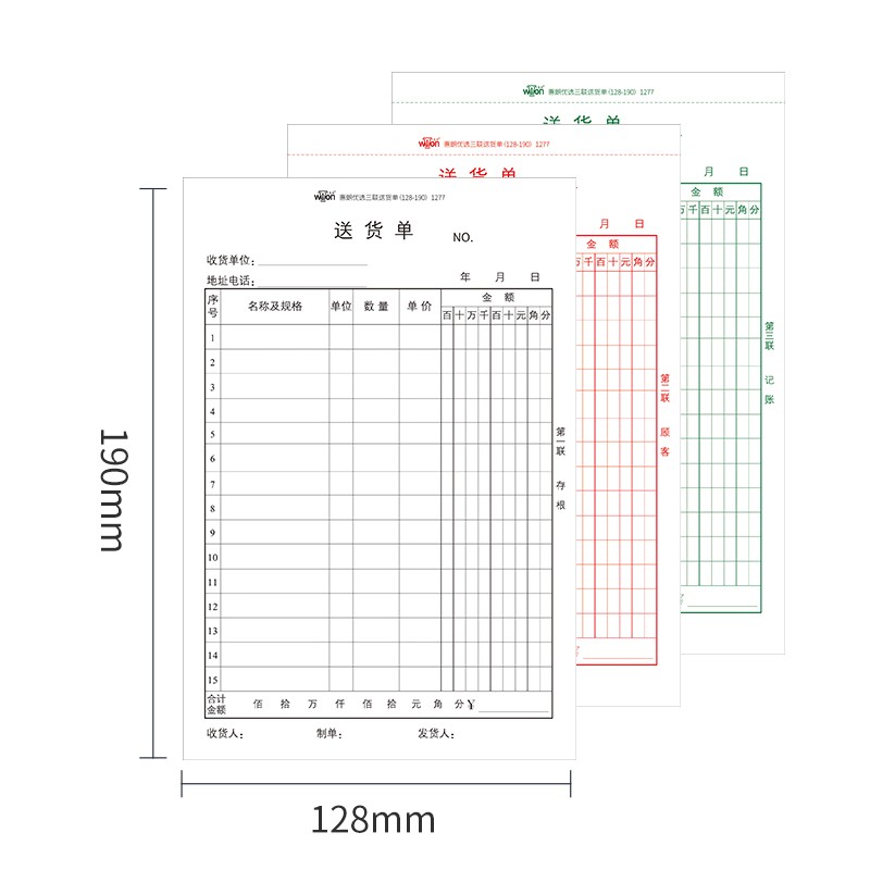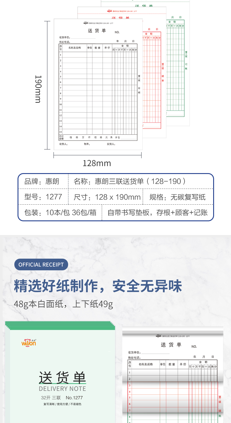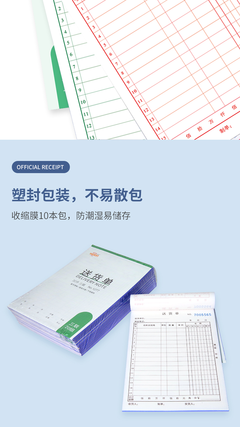 惠朗(huilang)三联送货单128*190mm 20组/本 10本/包 自带垫板撕裂线无碳复写32K收据单据系列1277 yykj-24030815451
