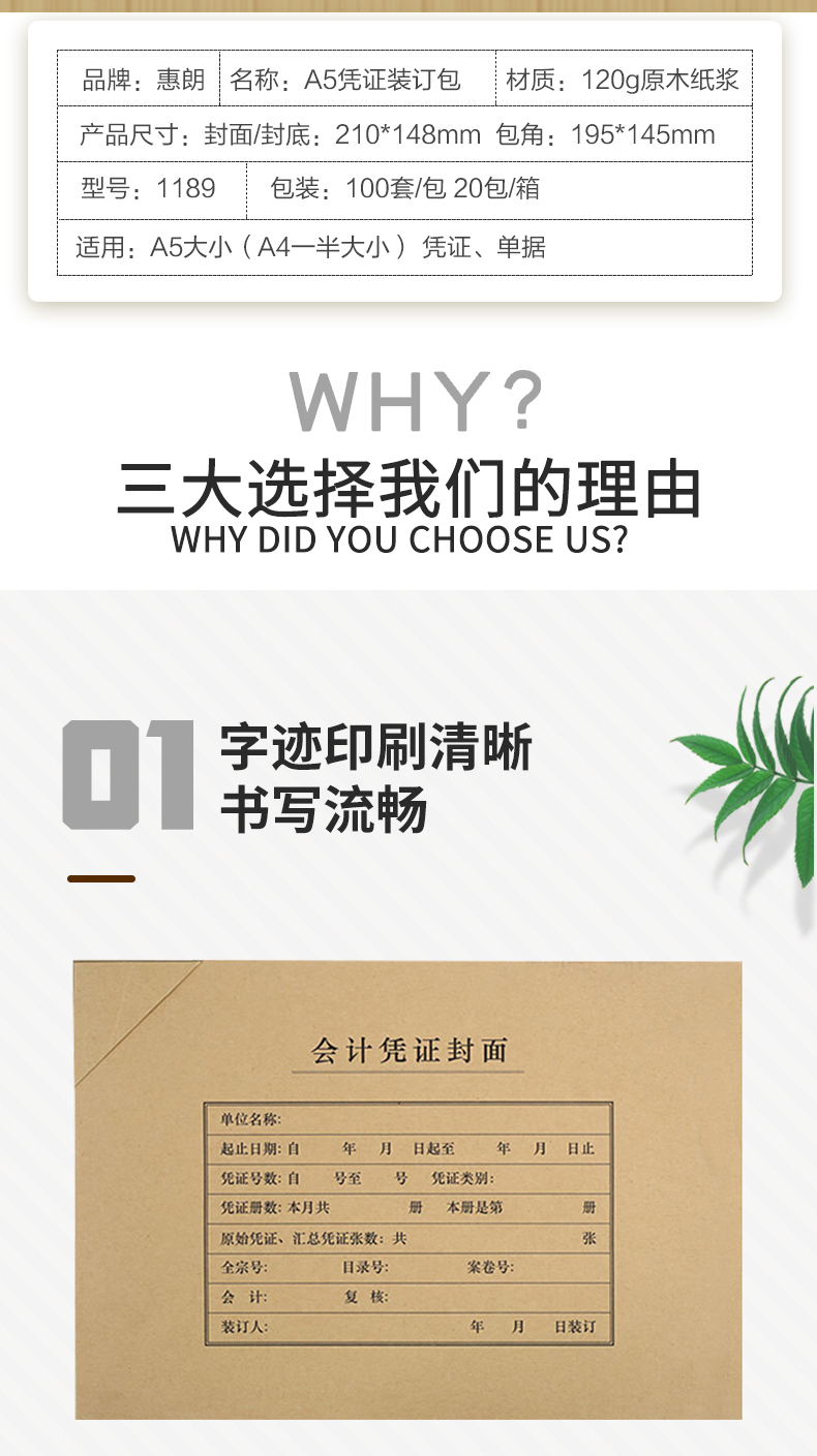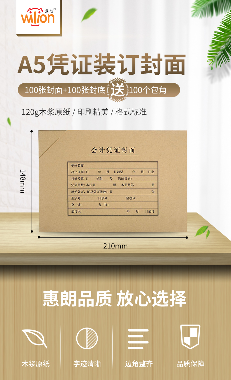 惠朗(huilang)A5凭证装订包 封面100套+包角100个 A4纸的一半 财务会计记账凭证封面封皮1189 yykj-240308155322