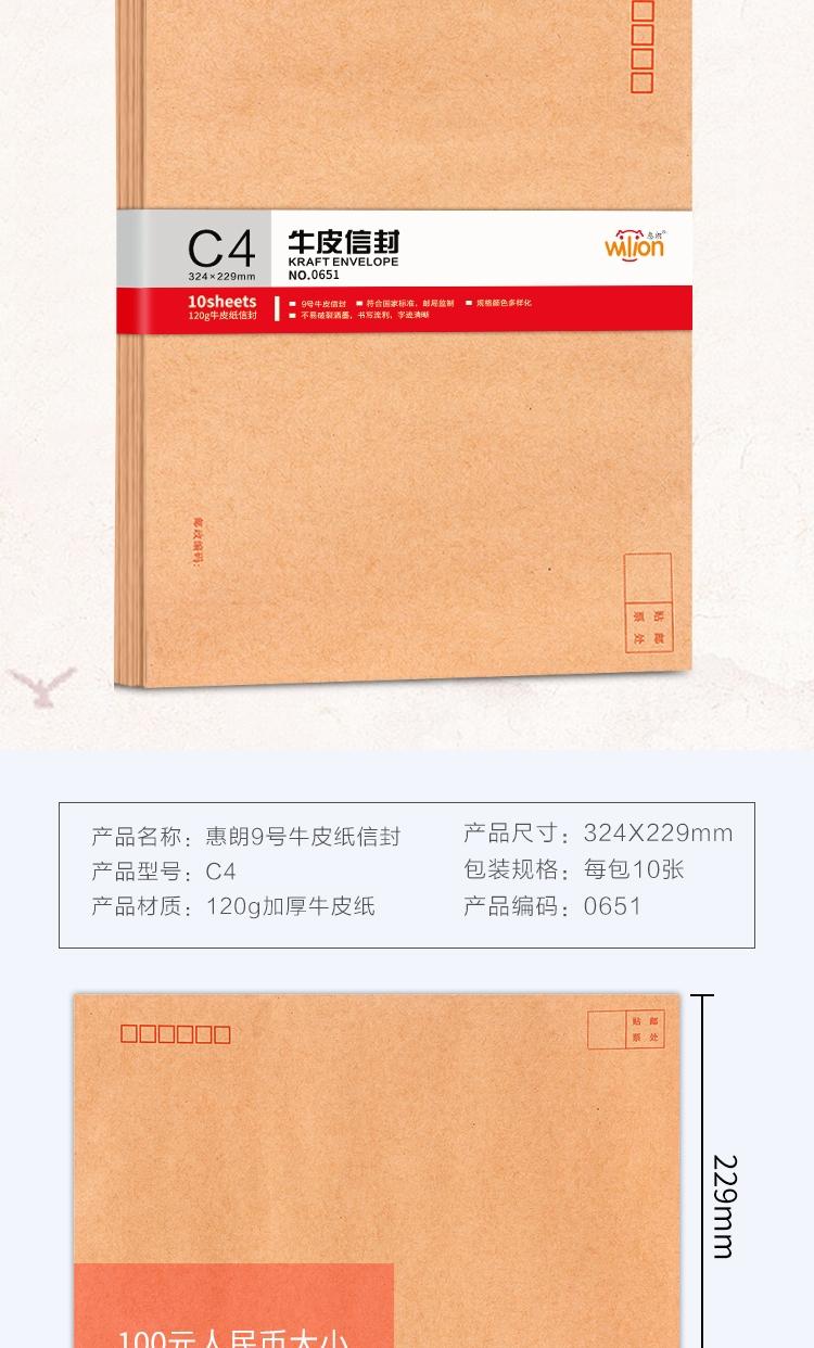 惠朗(huilang)0651 10张9号A4纸大信封 加厚120g牛皮纸邮局标准信封文件袋 yykj-240308165928