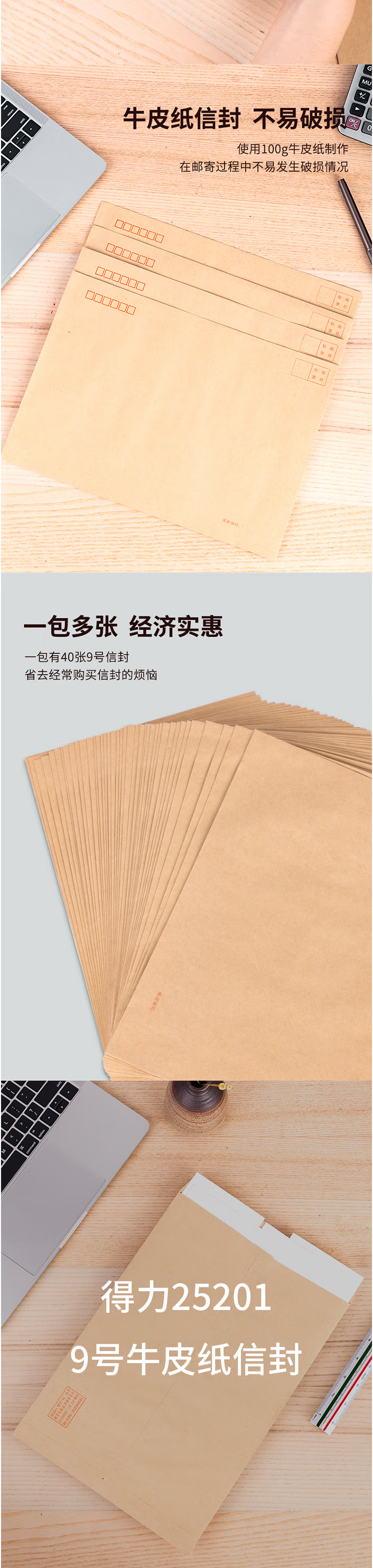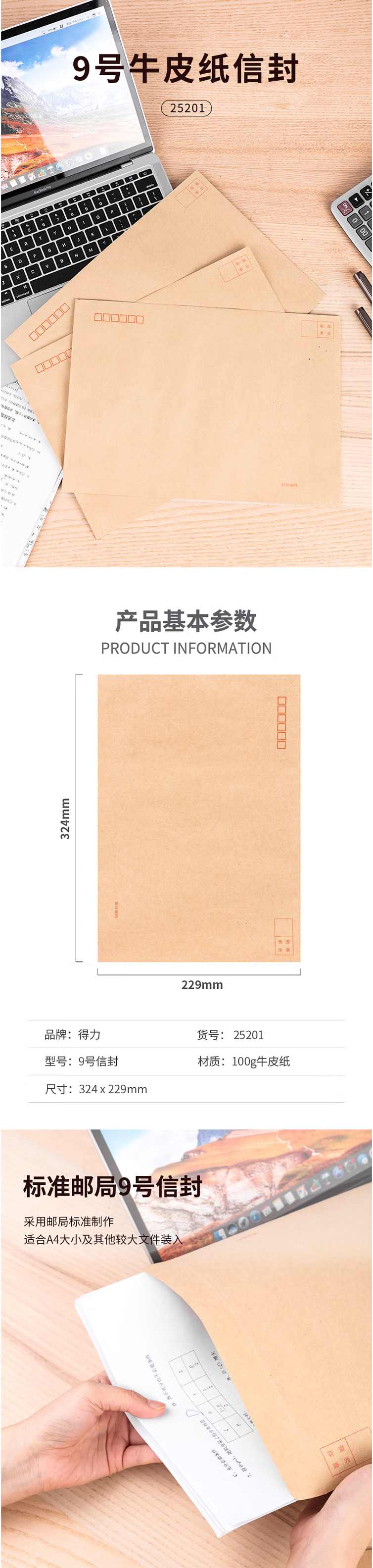 得力(deli) 25201 9号A4牛皮纸大信封 邮局标准信封 40个装