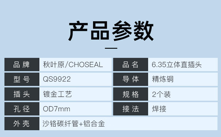 秋叶原(CHOSEAL)6.35大三芯音频头 6.5立体声 音频接头 麦克风话筒插接件 KTV音响箱工程配件 2个装 QS9922 yykj-240319133222