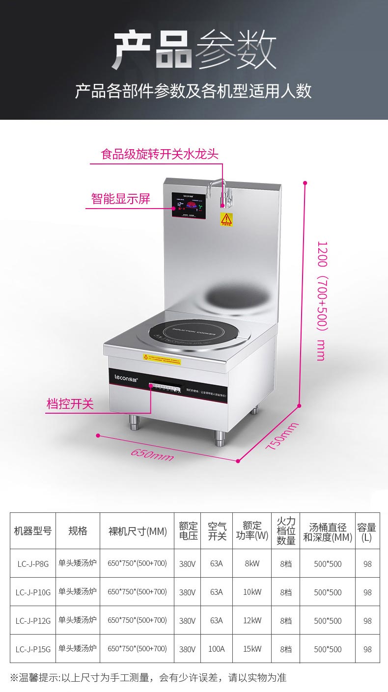 乐创(Lecon) LC-J-P10G 单头电磁汤矮汤炉灶10KW 380V8档控制酒店饭堂企业炒灶 yykj-240319133834