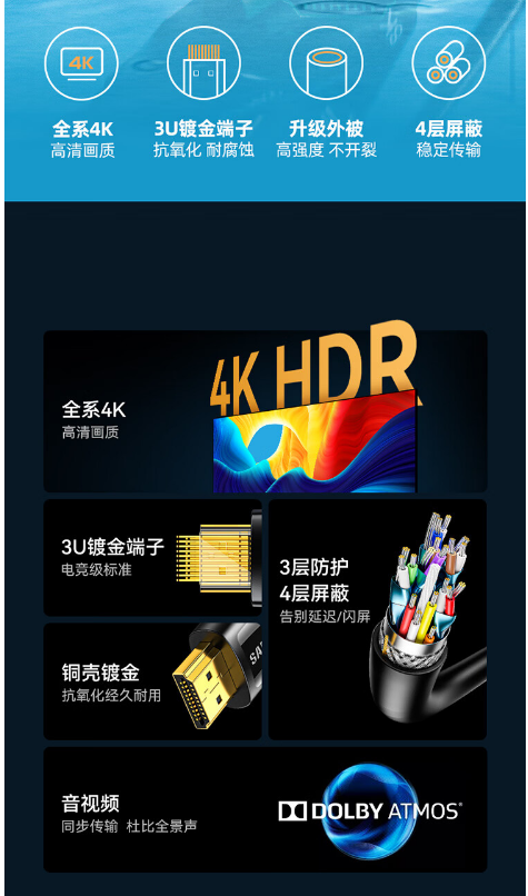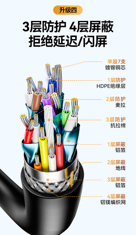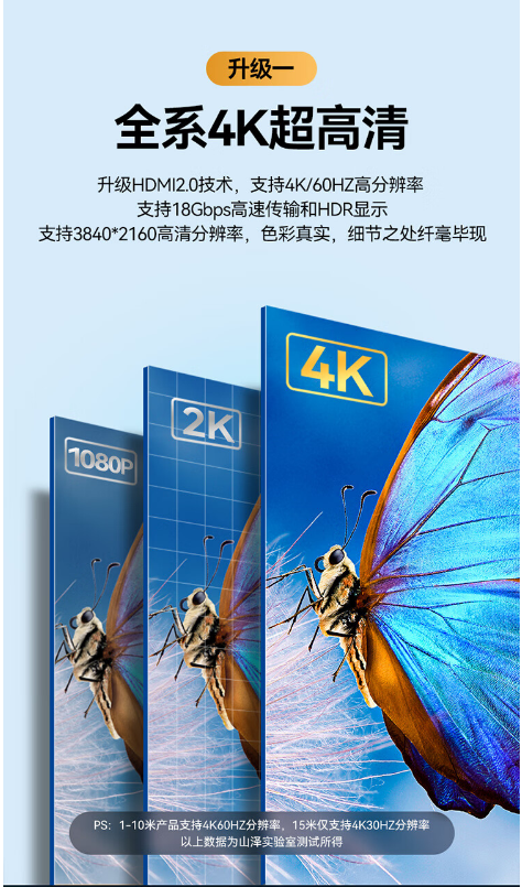 山泽 HDMI线2.0版 4K数字高清线 3D视频线 1米 DB10