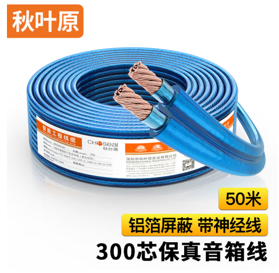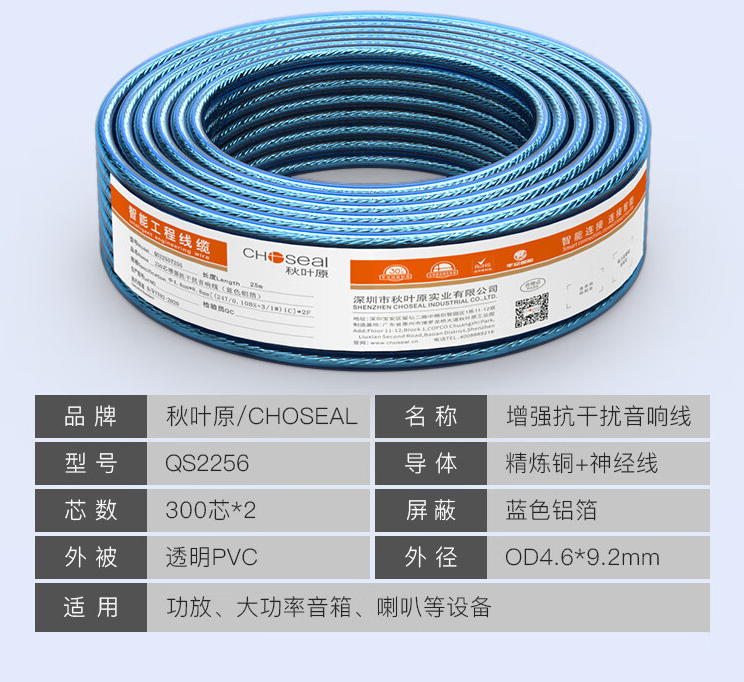 秋叶原(CHOSEAL)纯铜音响线 2*300芯带神经线 屏蔽抗干扰 功放音箱音频喇叭连接线 50米 QS2256T50S yykj-240320090148